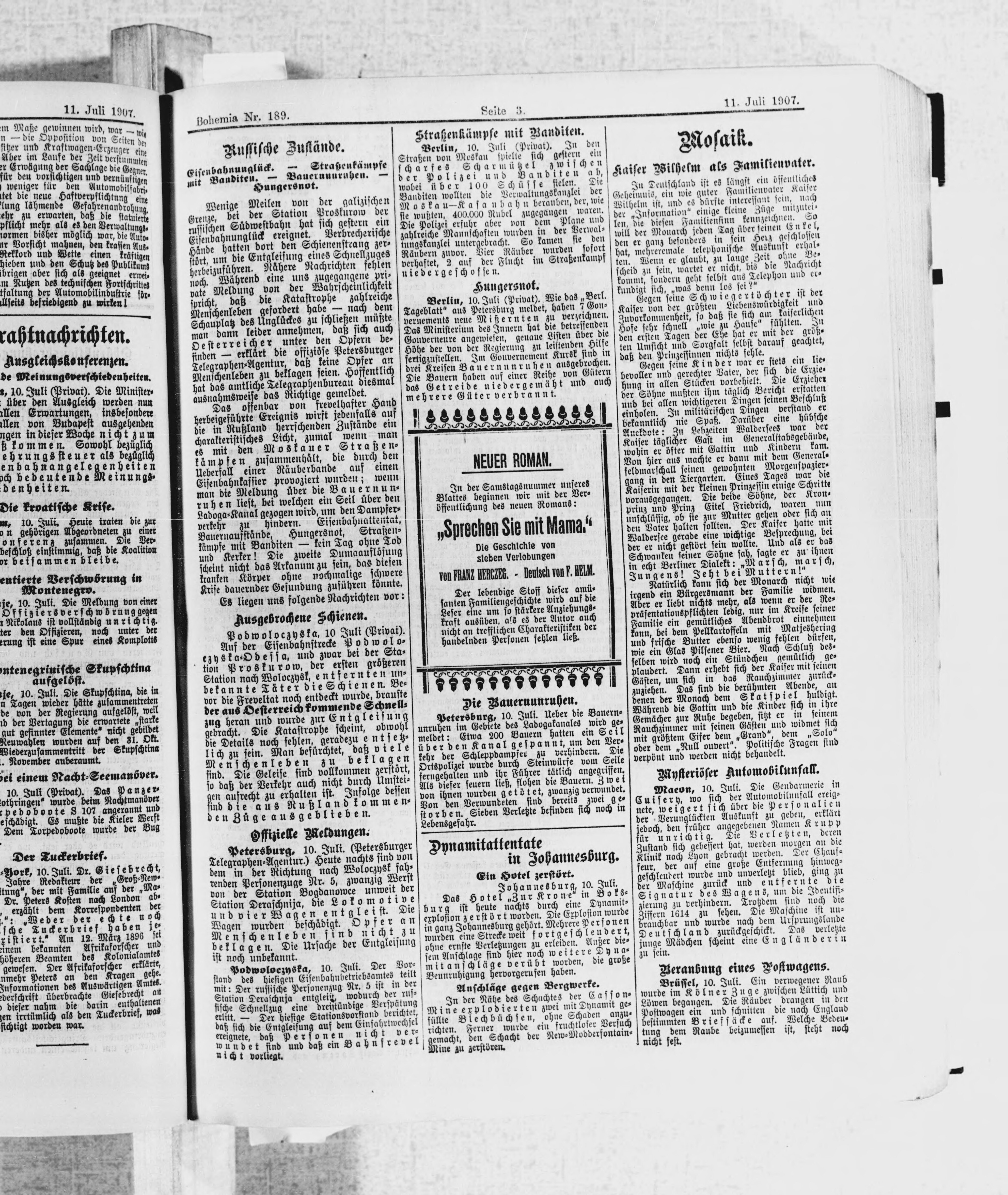 * Datum vydání výtisku: 11.7.1907 Číslo výtisku: 189 Poznámky k výtisku: ranní vydání