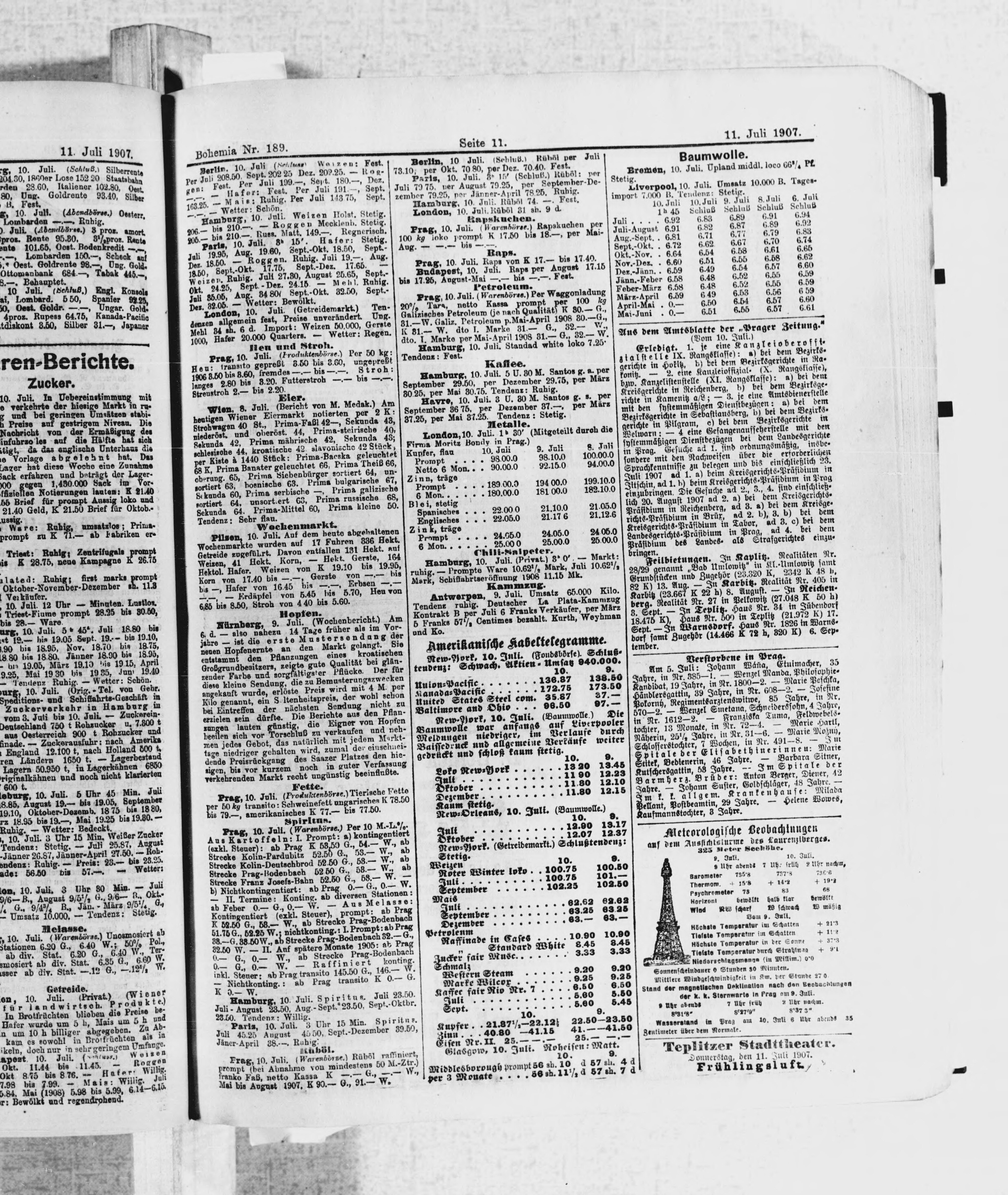 * Datum vydání výtisku: 11.7.1907 Číslo výtisku: 189 Poznámky k výtisku: ranní vydání