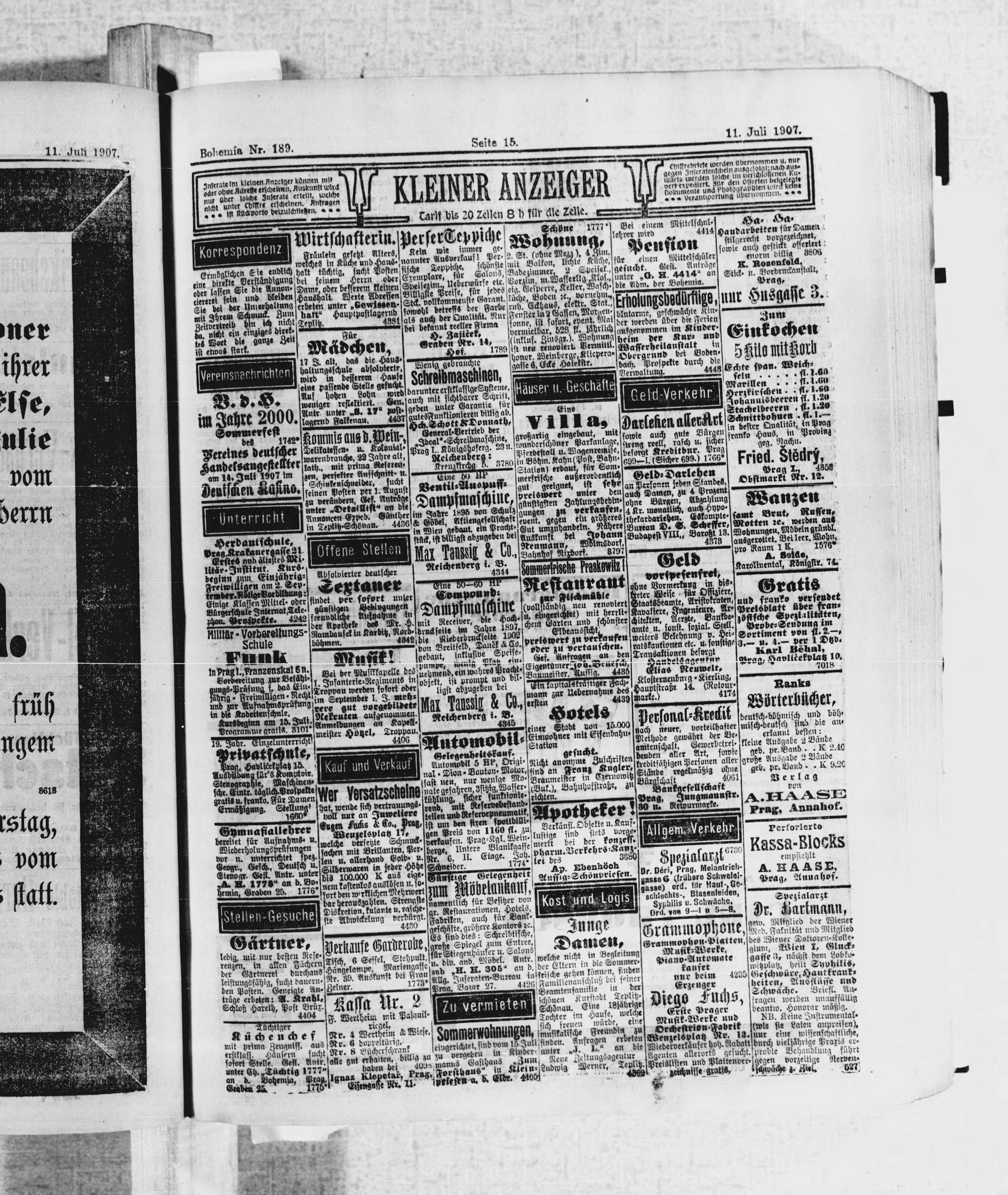 * Datum vydání výtisku: 11.7.1907 Číslo výtisku: 189 Poznámky k výtisku: ranní vydání