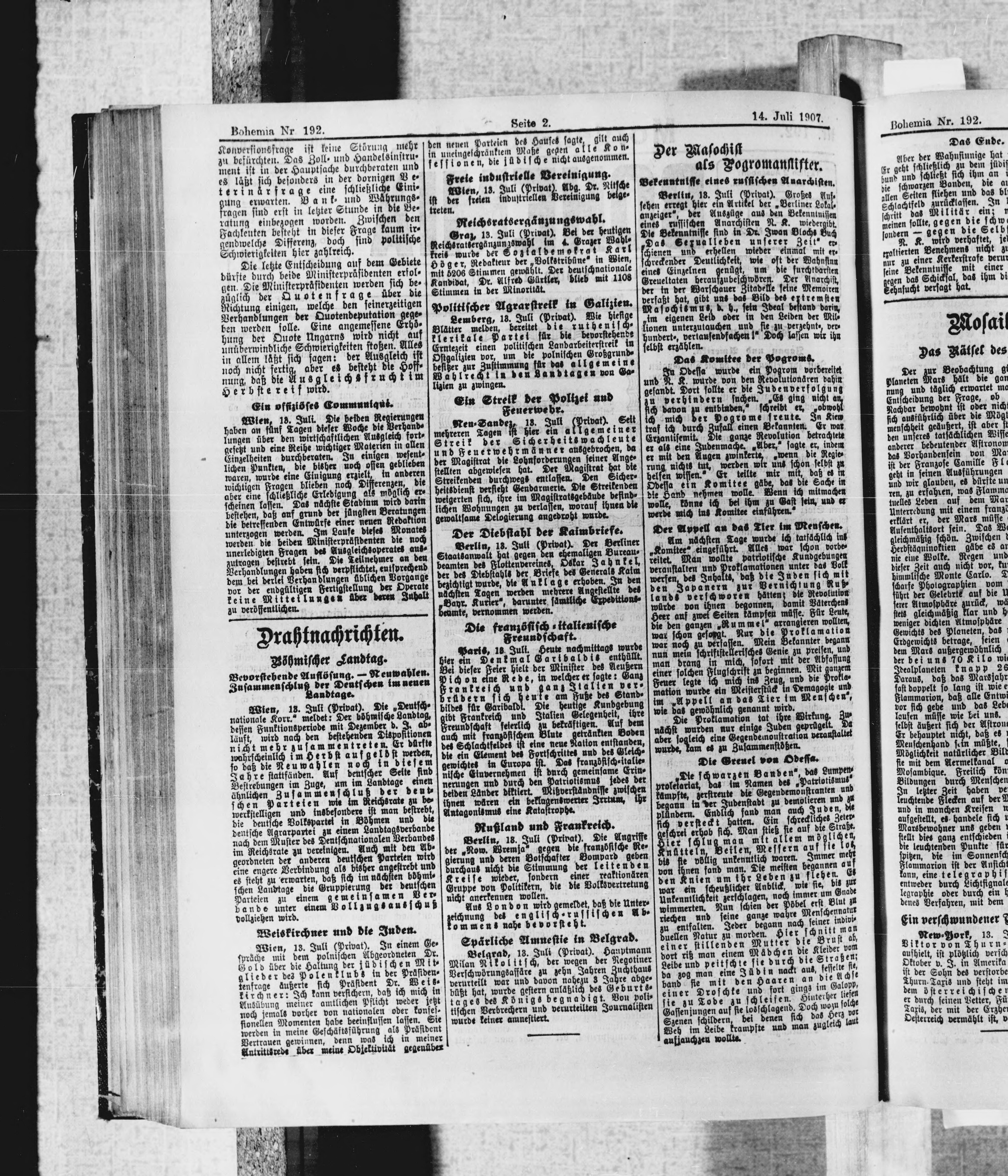 * Datum vydání výtisku: 14.7.1907 Číslo výtisku: 192 Poznámky k výtisku: ranní vydání