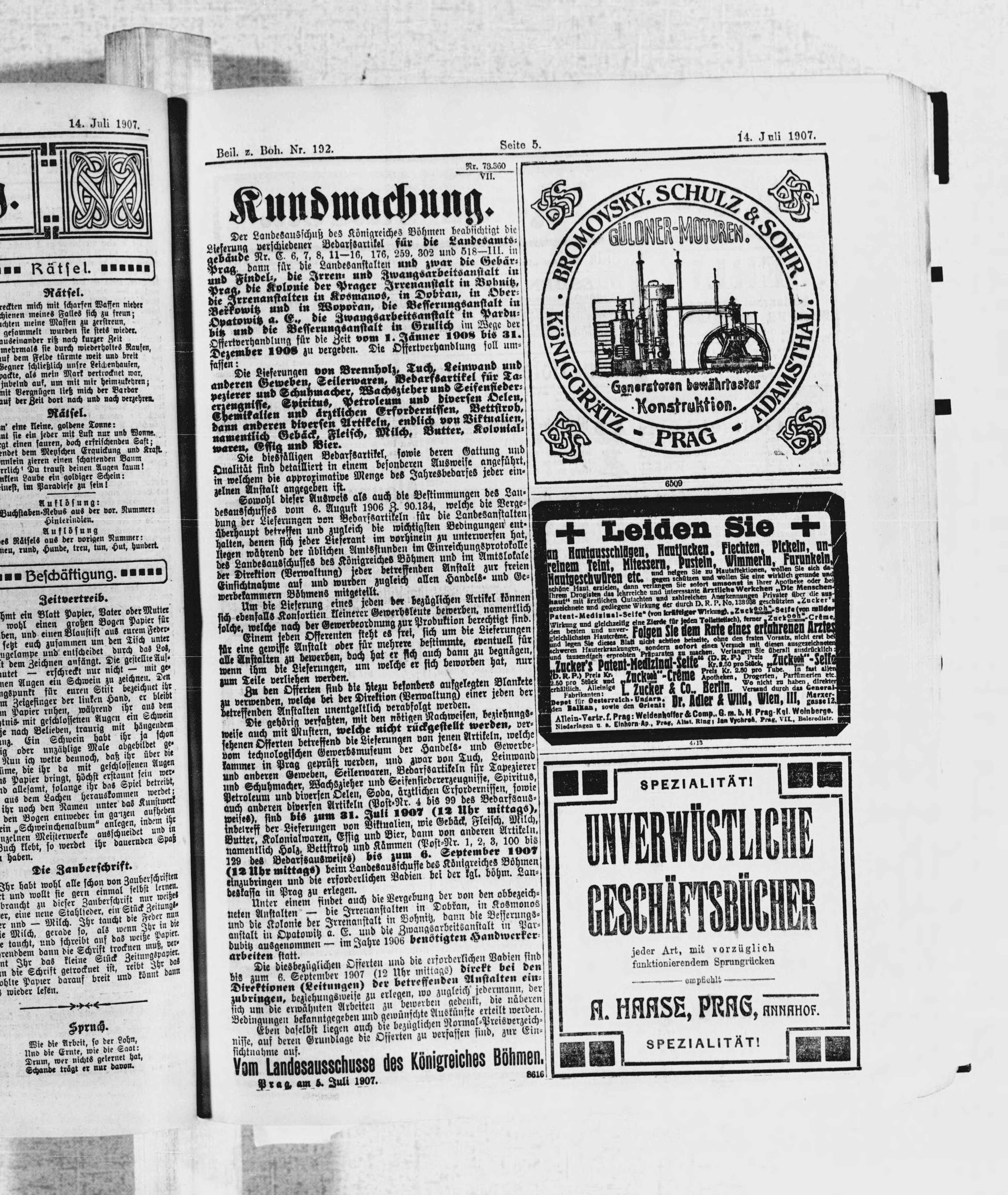 * Datum vydání výtisku: 14.7.1907 Číslo výtisku: 192 Typ výtisku: příloha