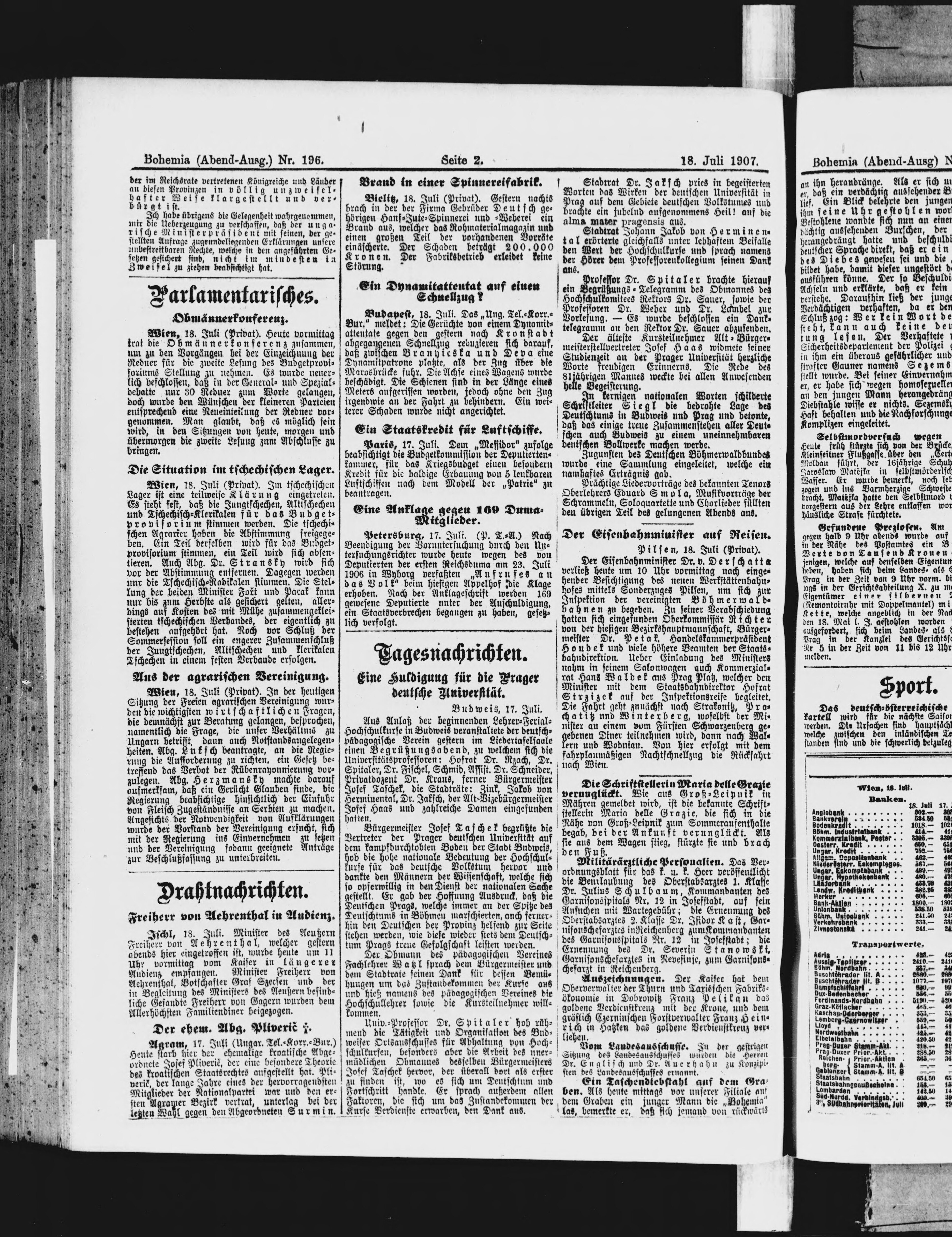 * Datum vydání výtisku: 18.7.1907 Číslo výtisku: 196 Poznámky k výtisku: večerní vydání