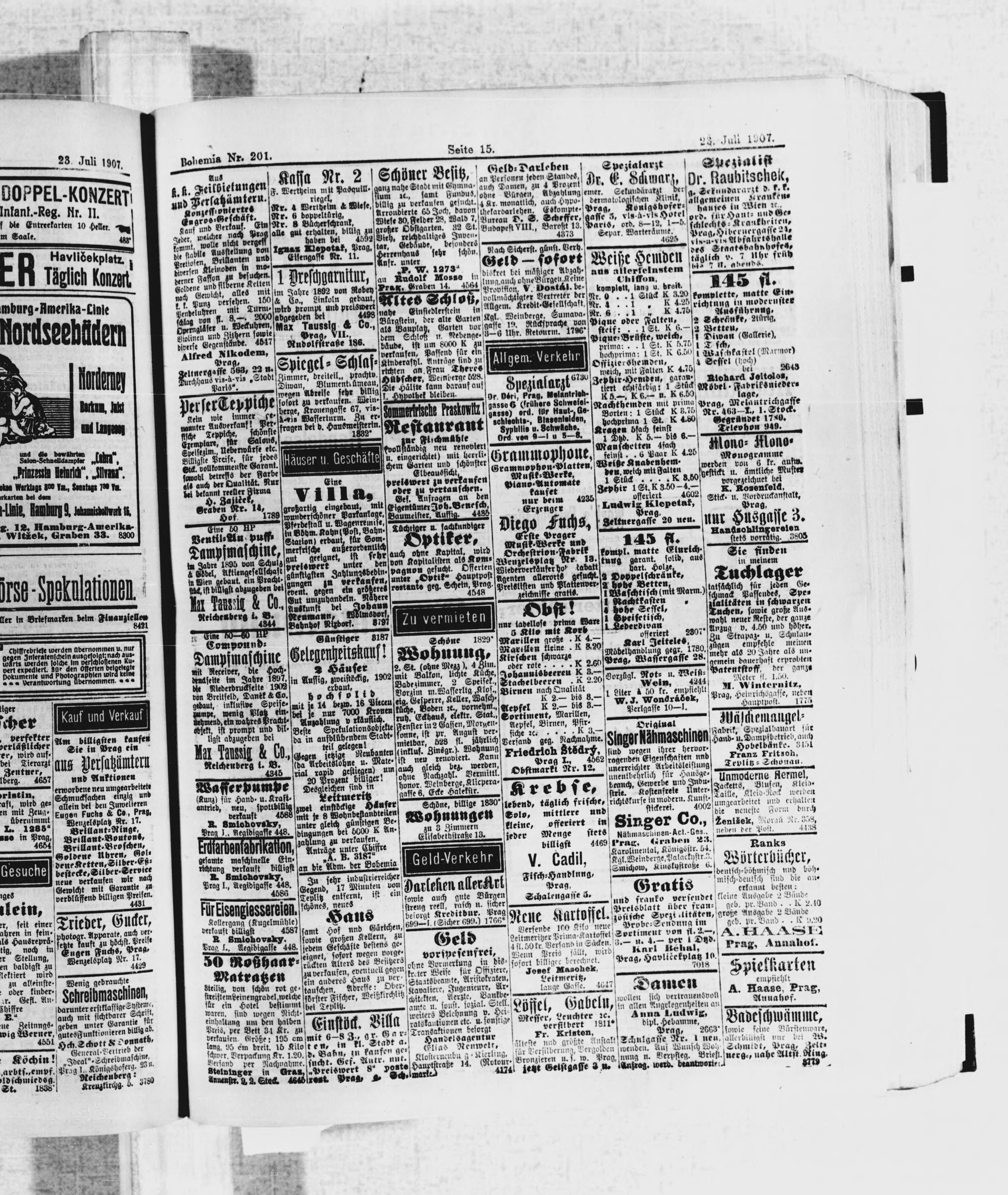 * Datum vydání výtisku: 23.7.1907 Číslo výtisku: 201 Poznámky k výtisku: ranní vydání