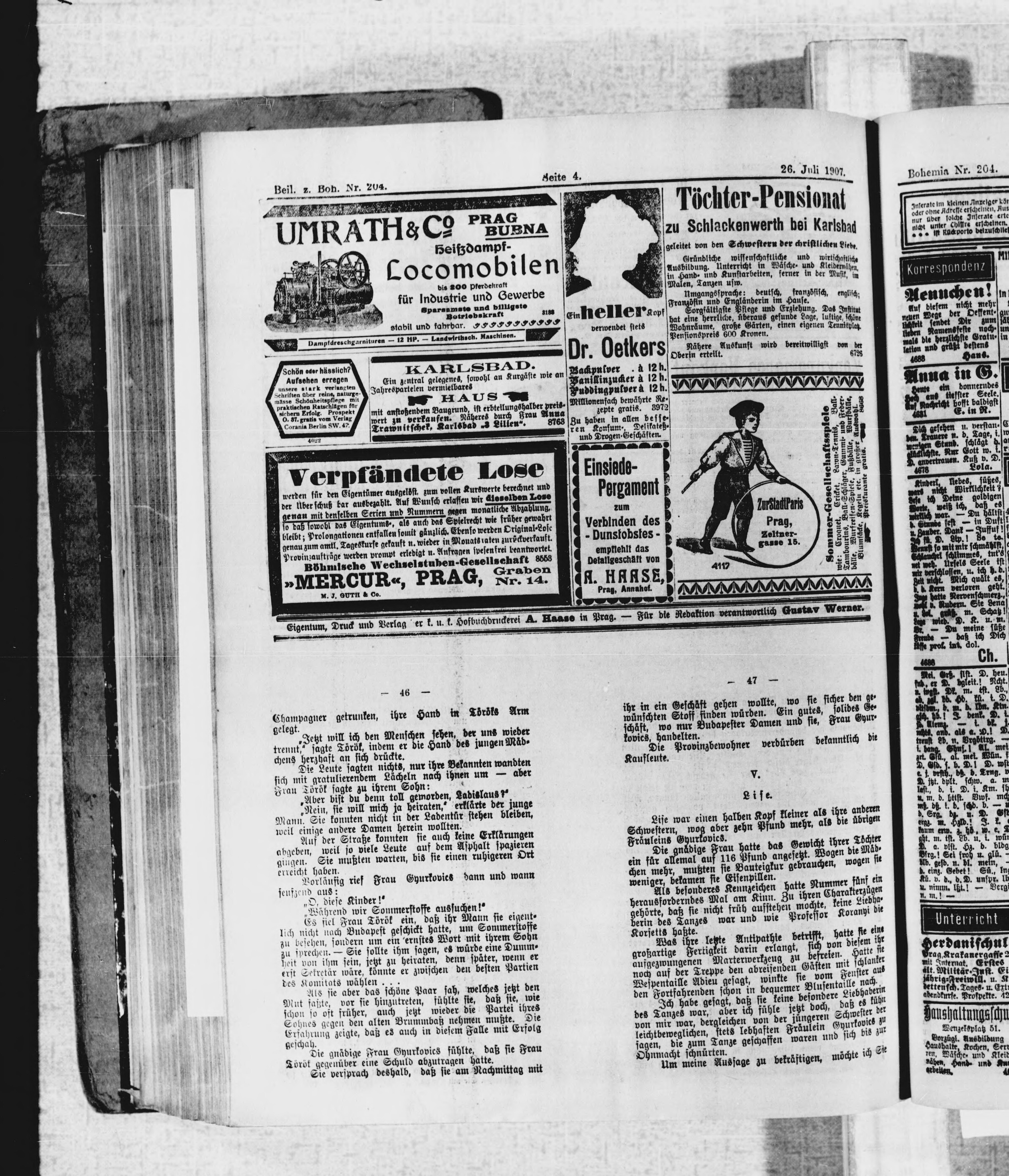 * Datum vydání výtisku: 26.7.1907 Číslo výtisku: 204 Typ výtisku: příloha