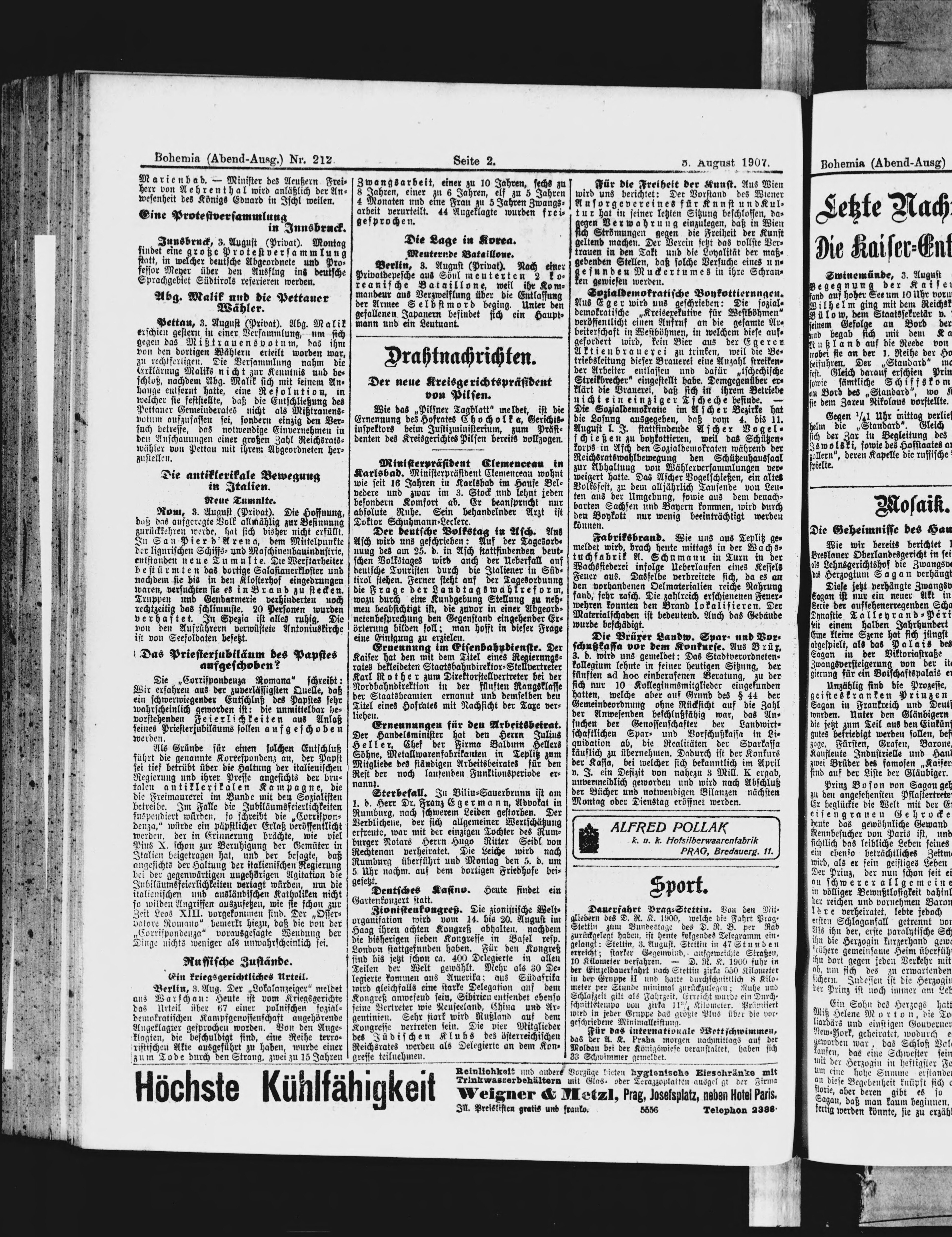 * Datum vydání výtisku: 3.8.1907 Číslo výtisku: 212 Poznámky k výtisku: večerní vydání