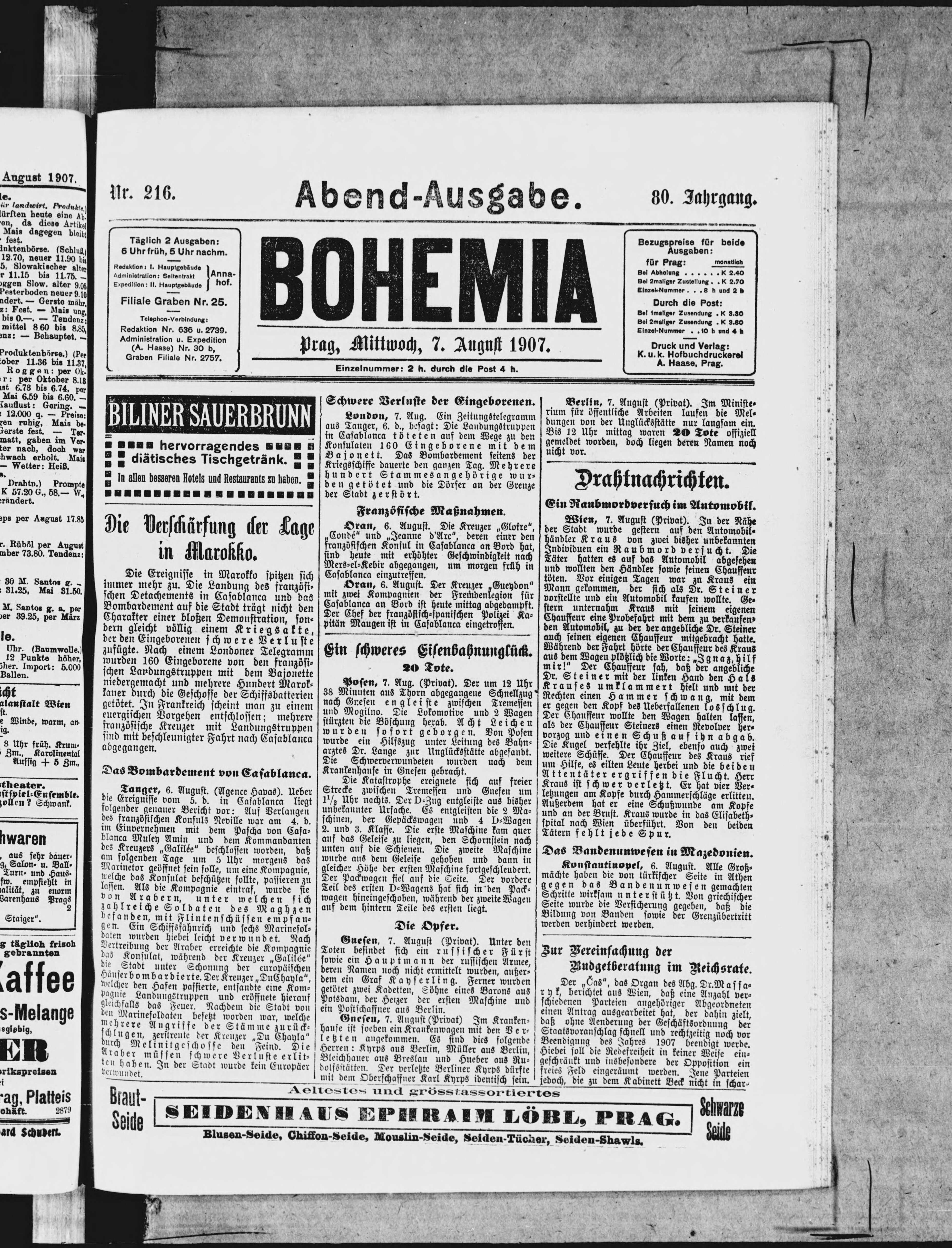 * Datum vydání výtisku: 7.8.1907 Číslo výtisku: 216 Poznámky k výtisku: večerní vydání