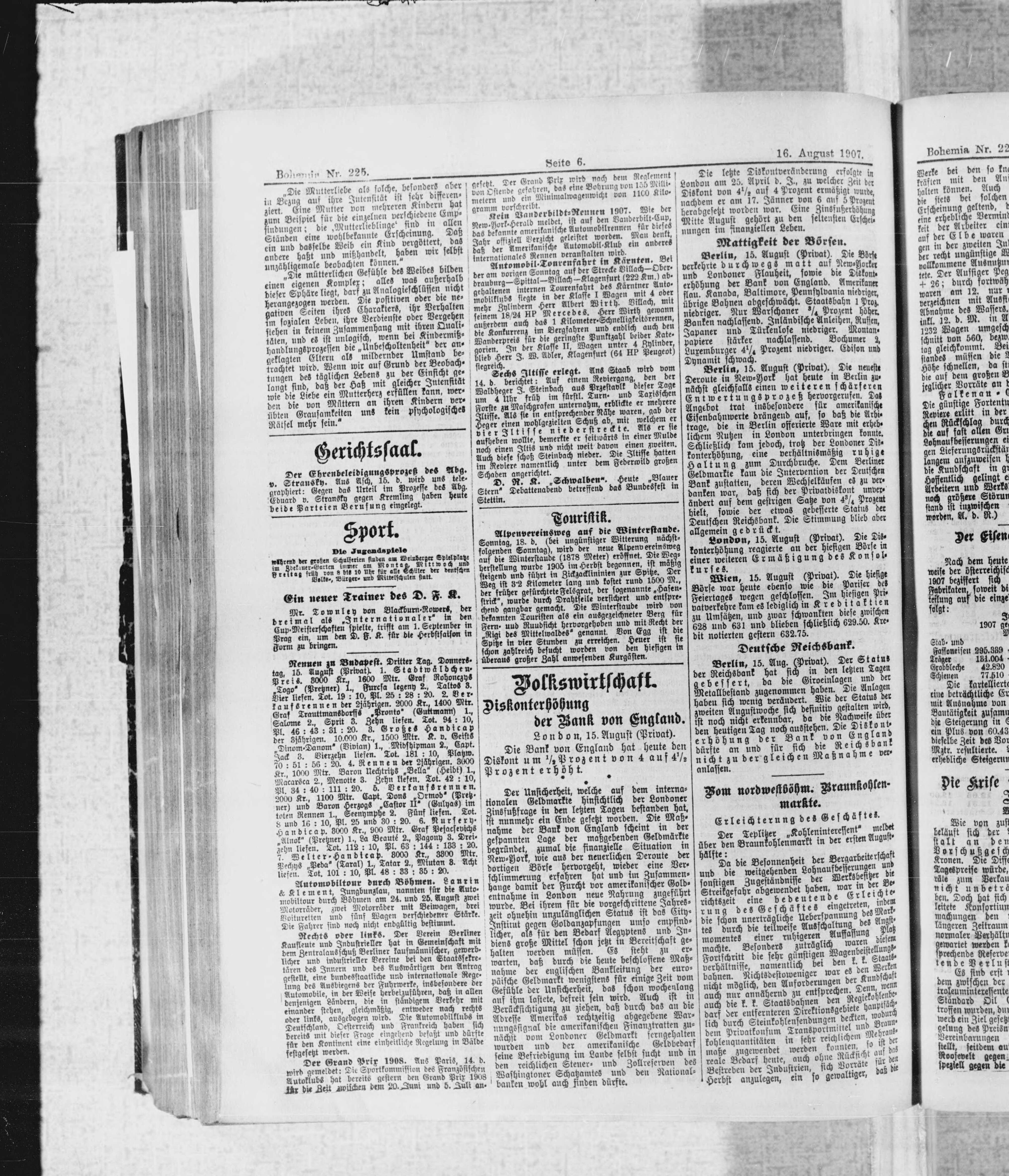 * Datum vydání výtisku: 16.8.1907 Číslo výtisku: 225 Poznámky k výtisku: ranní vydání