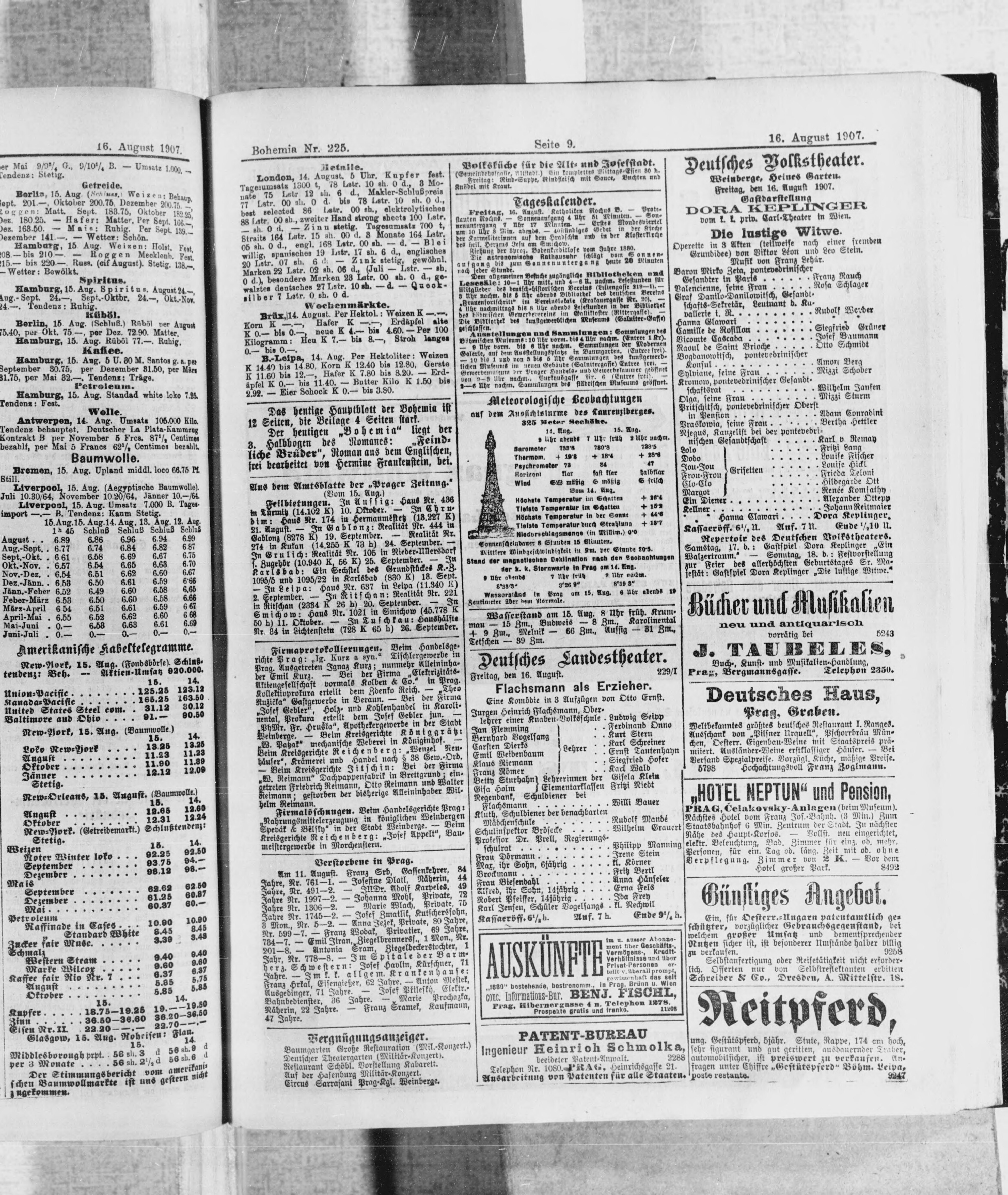 * Datum vydání výtisku: 16.8.1907 Číslo výtisku: 225 Poznámky k výtisku: ranní vydání