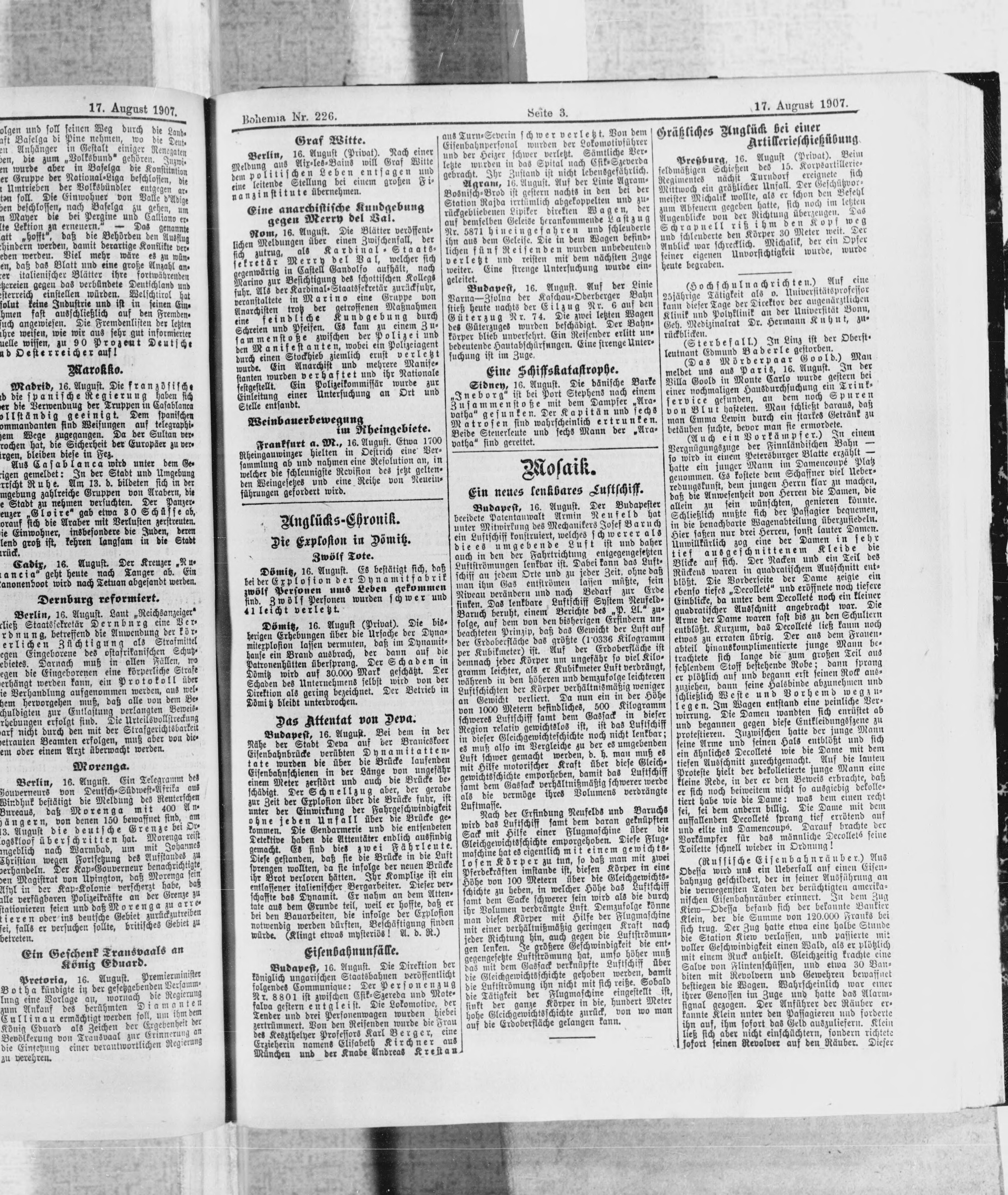 * Datum vydání výtisku: 17.8.1907 Číslo výtisku: 226 Poznámky k výtisku: ranní vydání