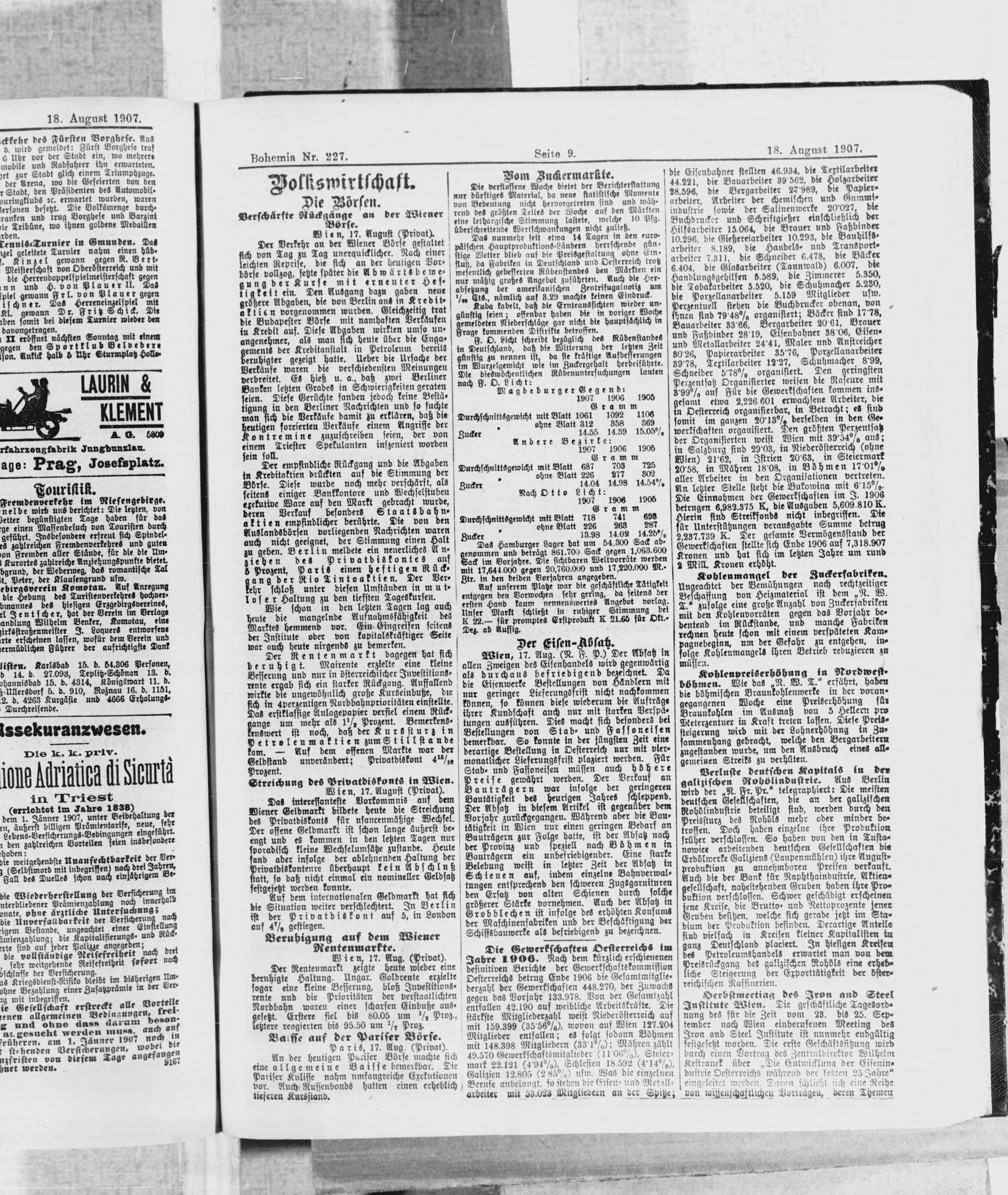 * Datum vydání výtisku: 18.8.1907 Číslo výtisku: 227 Poznámky k výtisku: ranní vydání