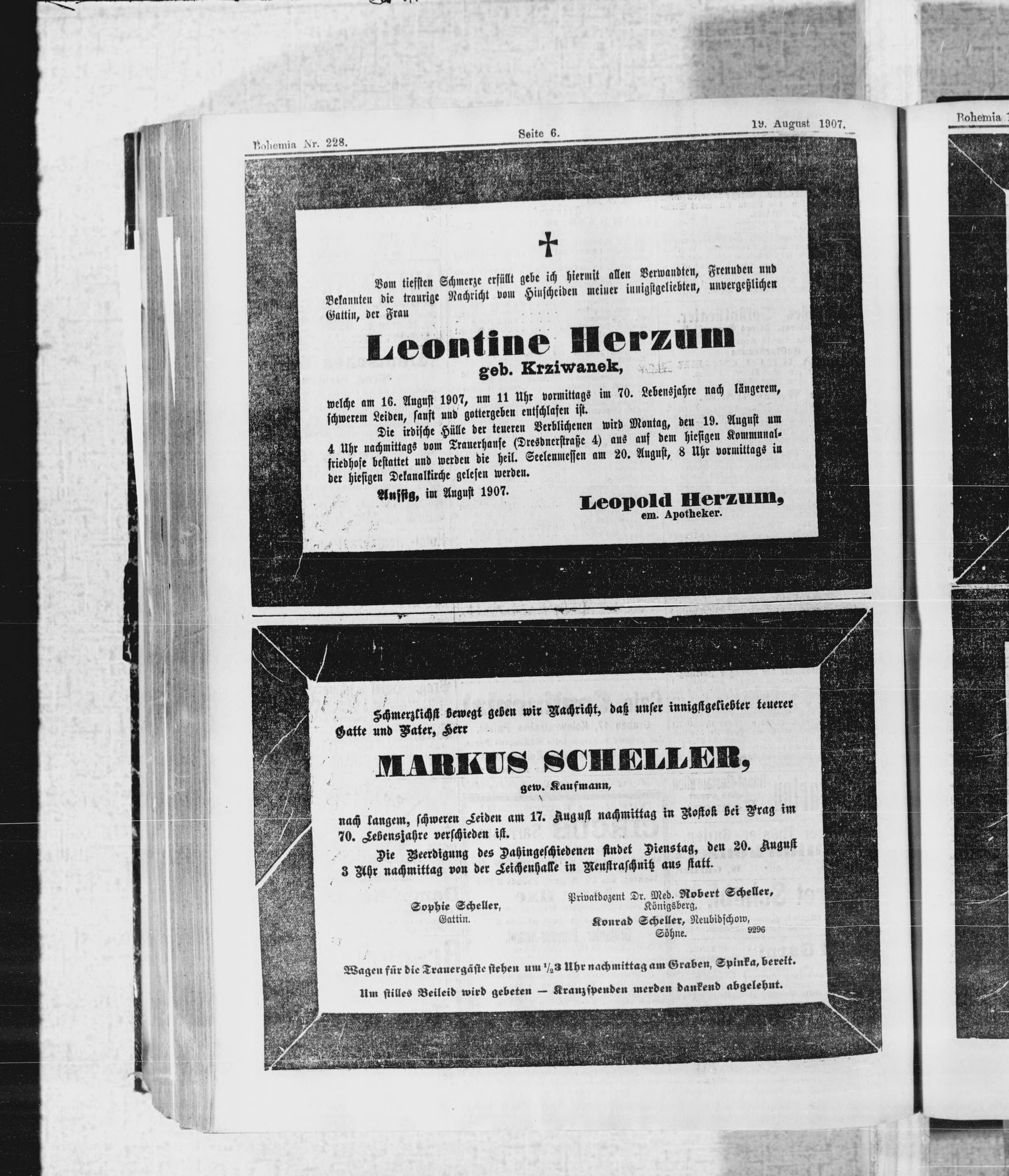 * Datum vydání výtisku: 19.8.1907 Číslo výtisku: 228 Poznámky k výtisku: polední vydání