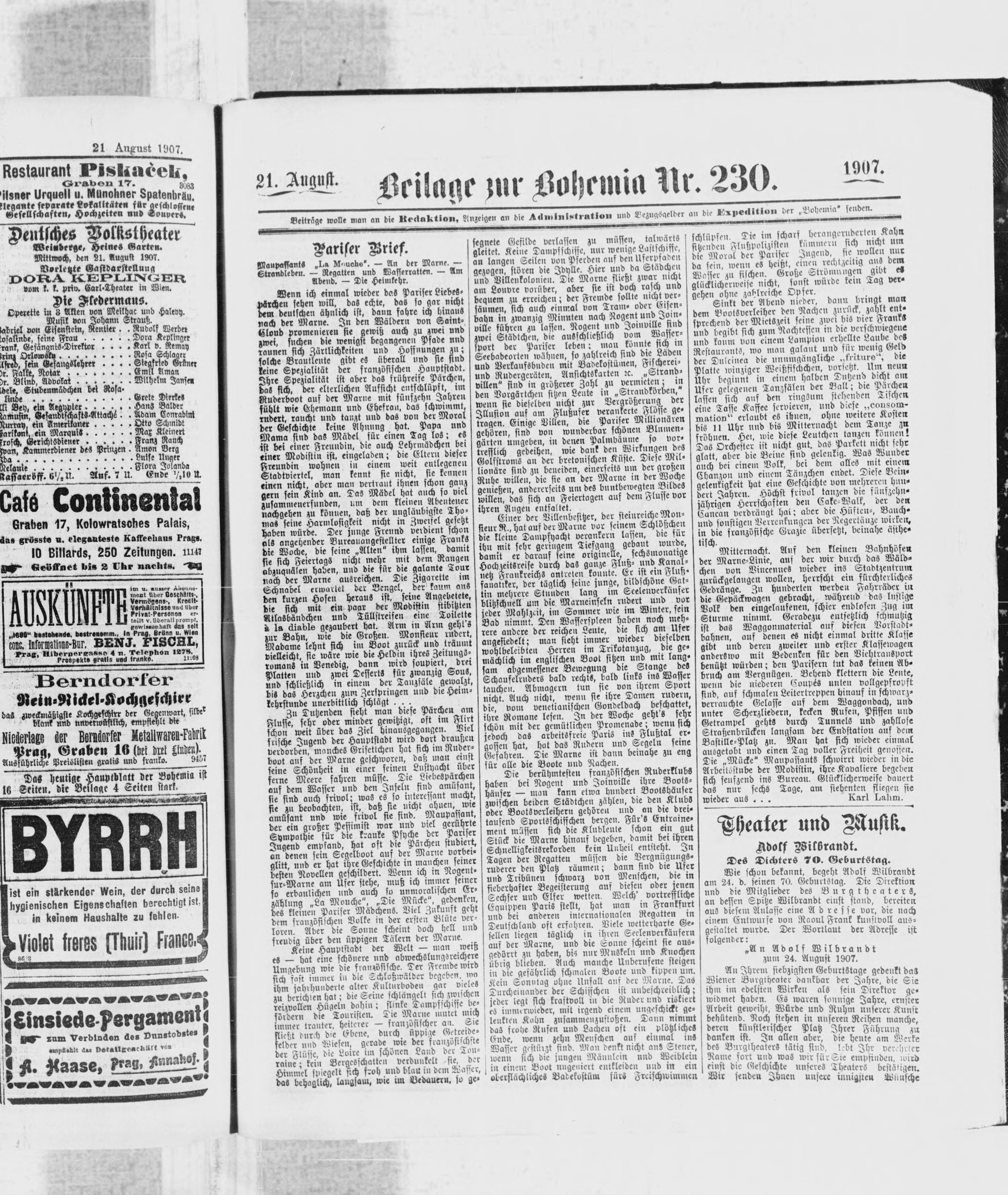 * Datum vydání výtisku: 21.8.1907 Číslo výtisku: 230 Typ výtisku: příloha