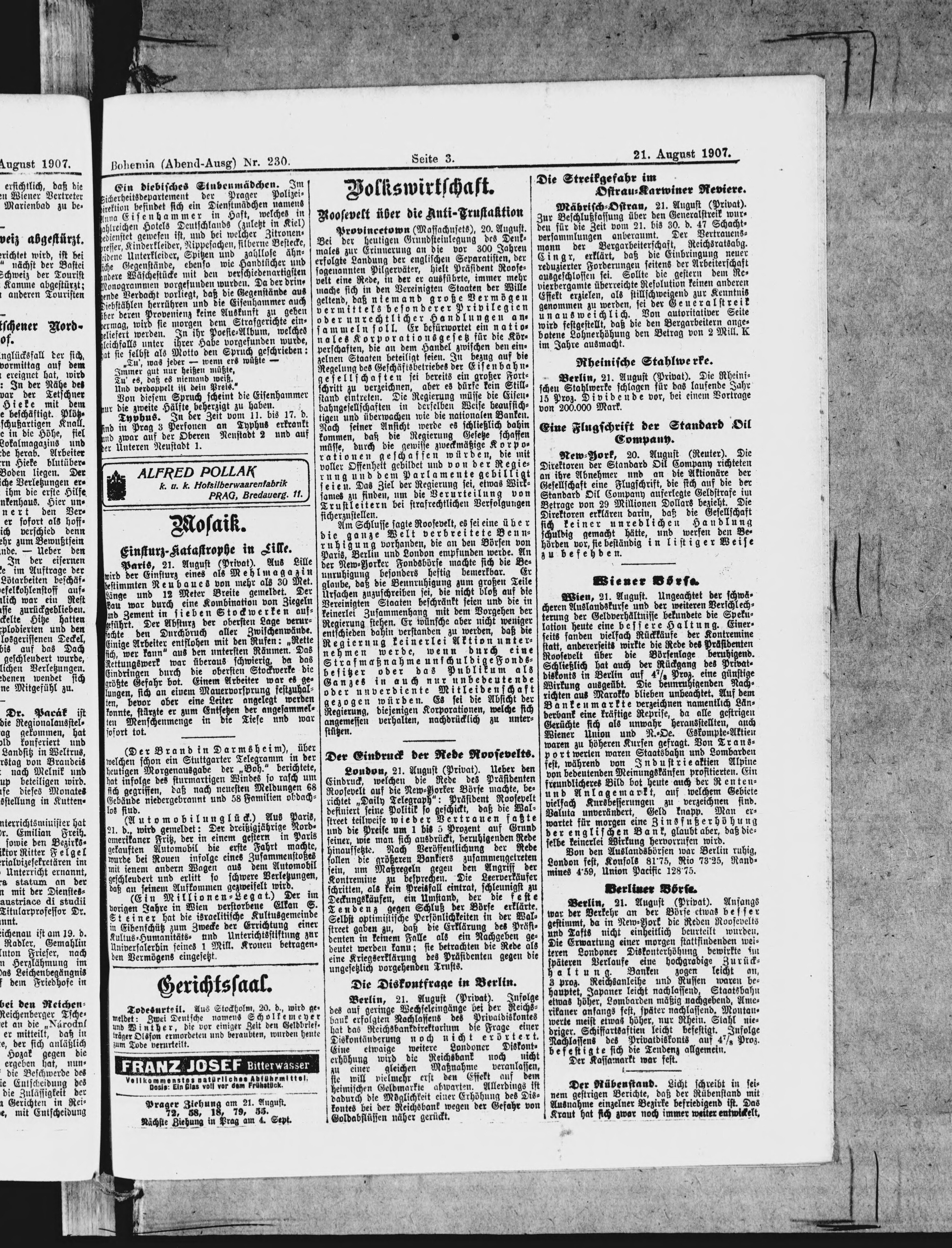 * Datum vydání výtisku: 21.8.1907 Číslo výtisku: 230 Poznámky k výtisku: večerní vydání