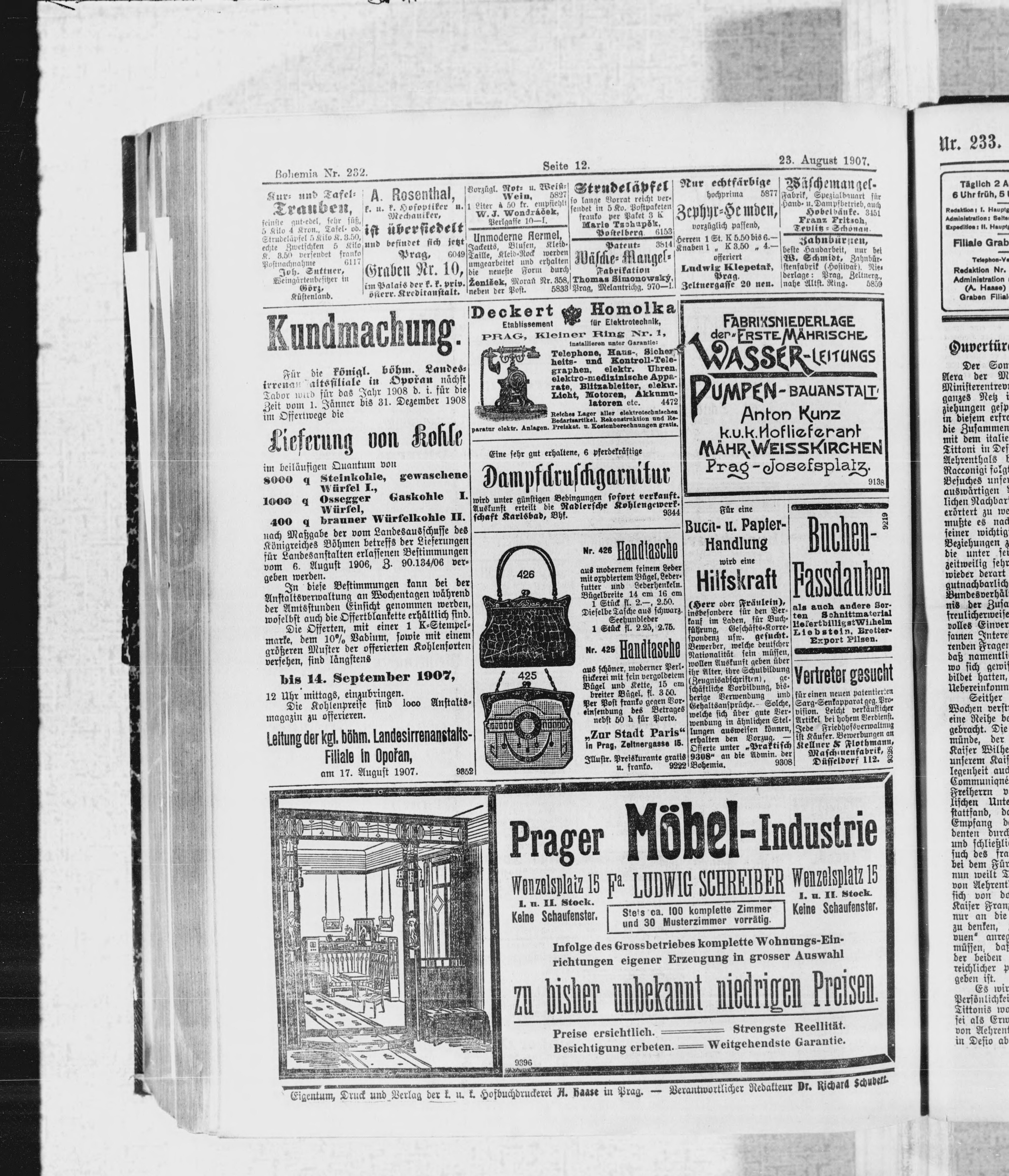 * Datum vydání výtisku: 23.8.1907 Číslo výtisku: 232 Poznámky k výtisku: ranní vydání