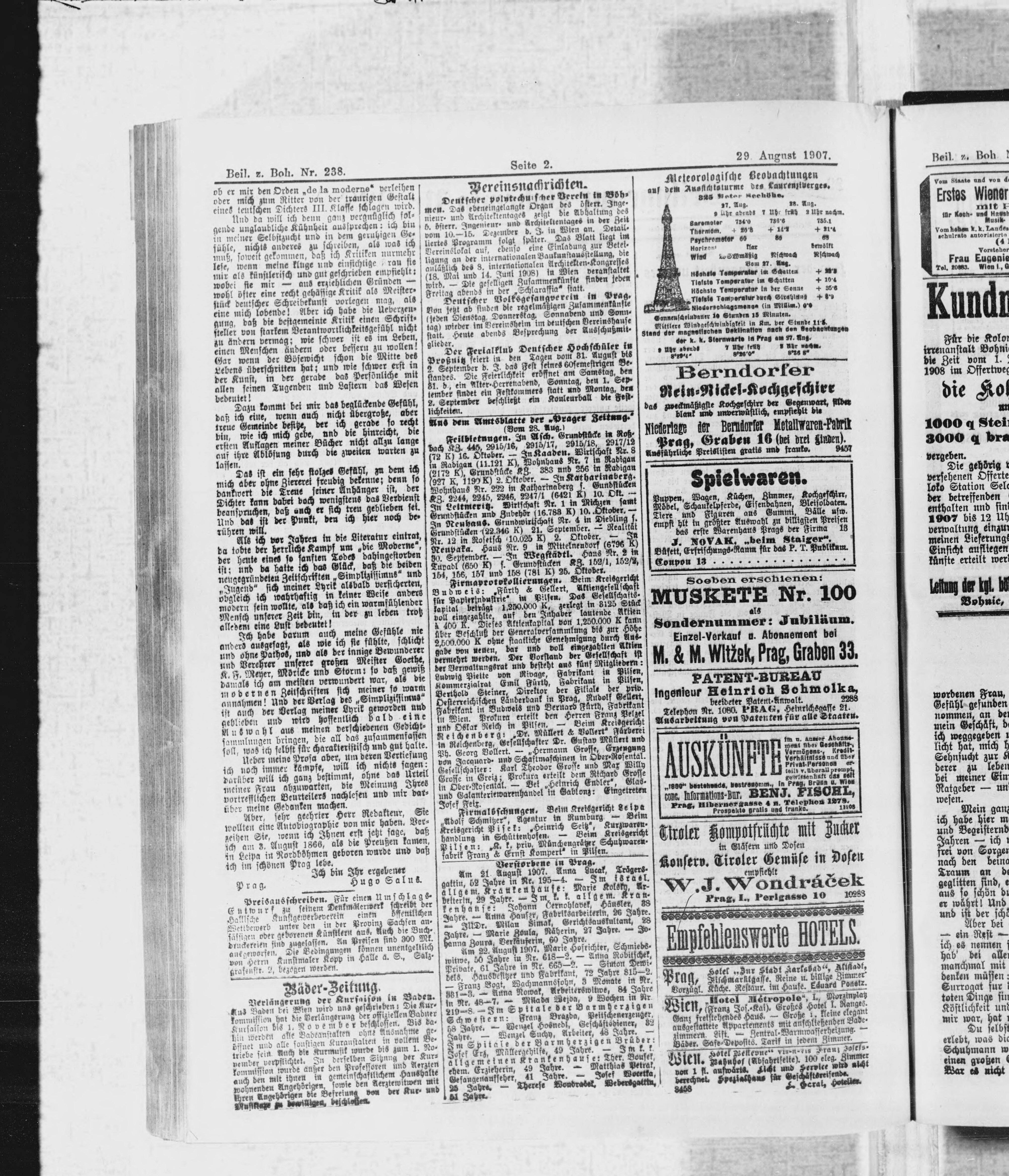 * Datum vydání výtisku: 29.8.1907 Číslo výtisku: 238 Typ výtisku: příloha