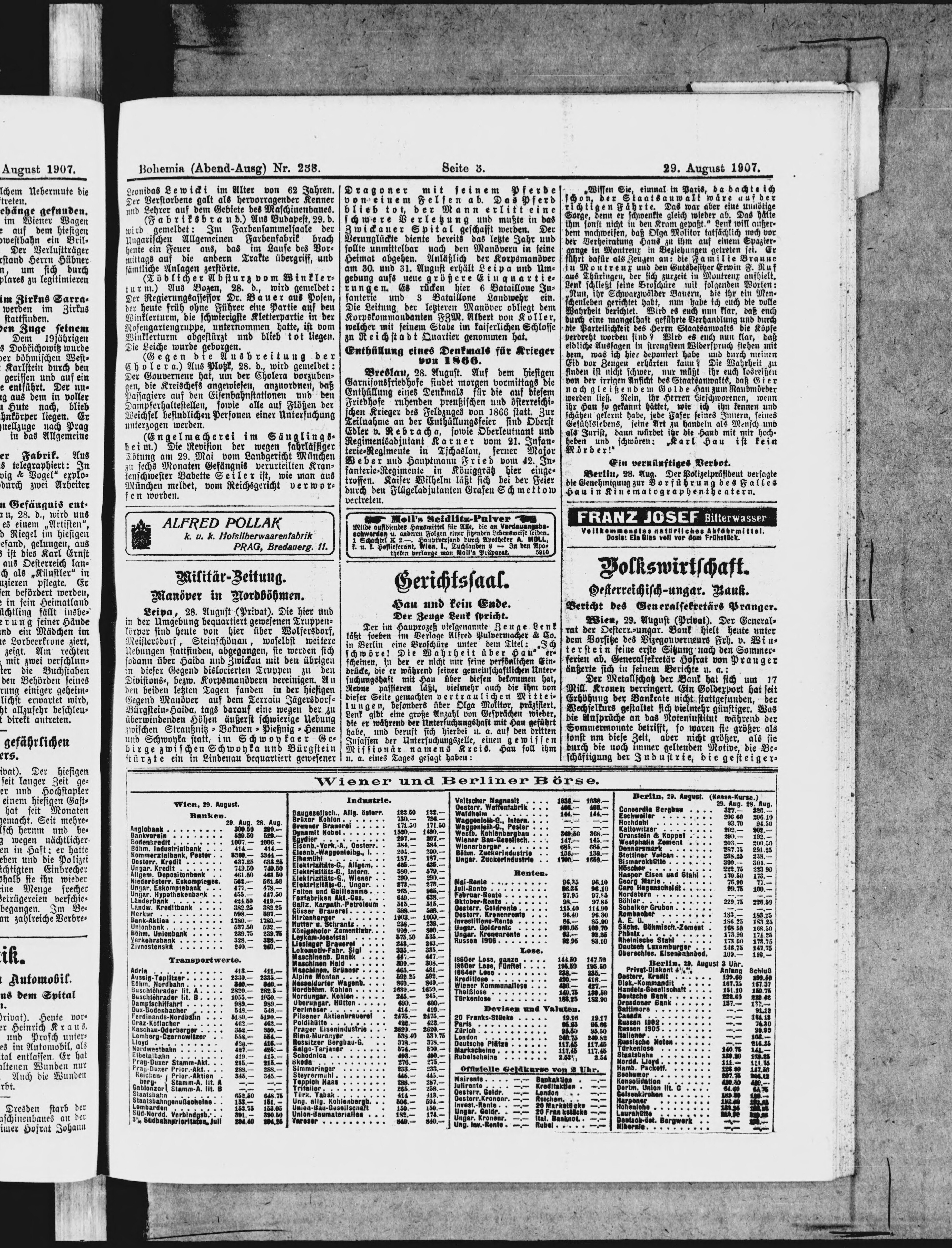 * Datum vydání výtisku: 29.8.1907 Číslo výtisku: 238 Poznámky k výtisku: večerní vydání