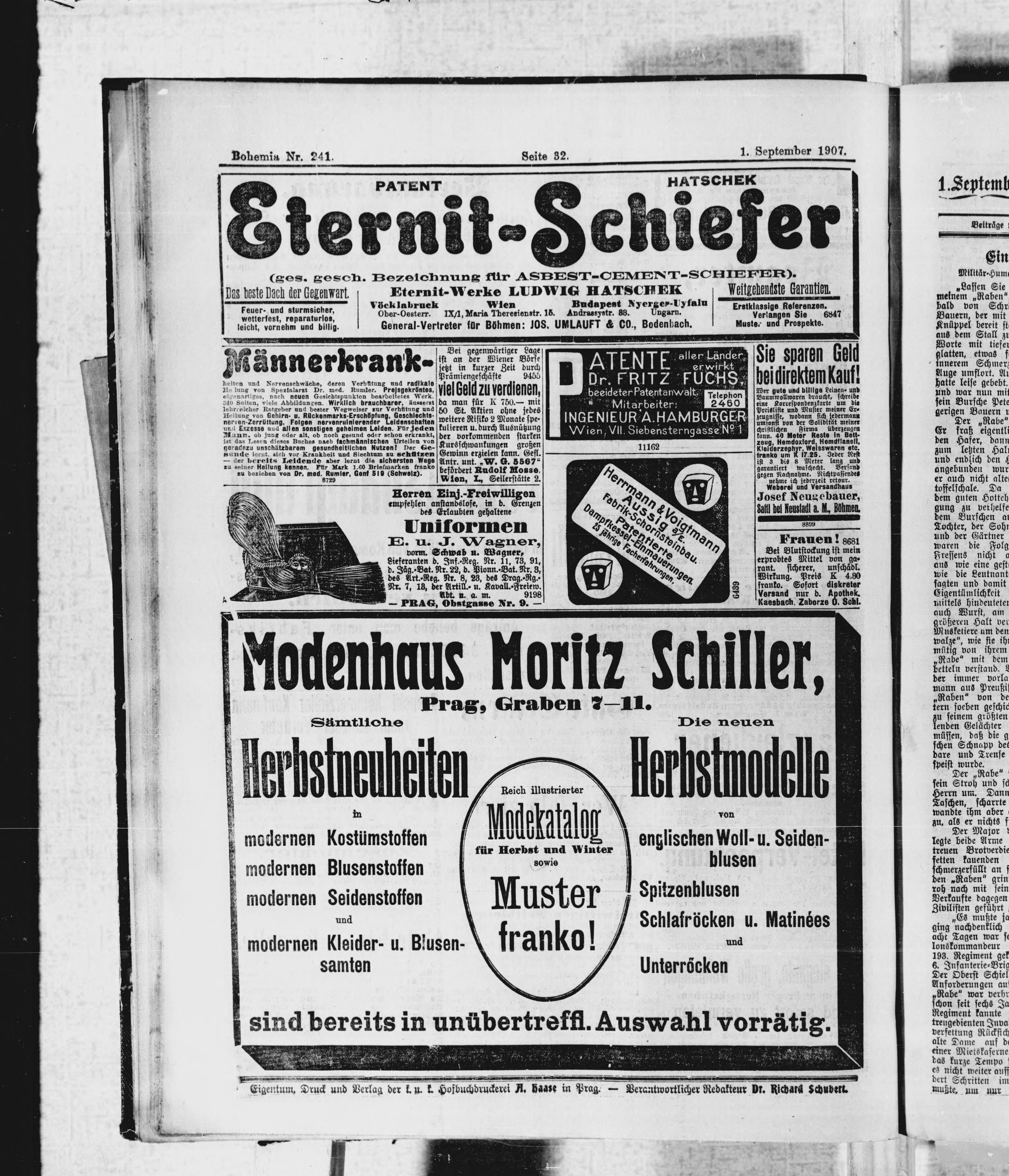 * Datum vydání výtisku: 1.9.1907 Číslo výtisku: 241 Poznámky k výtisku: ranní vydání