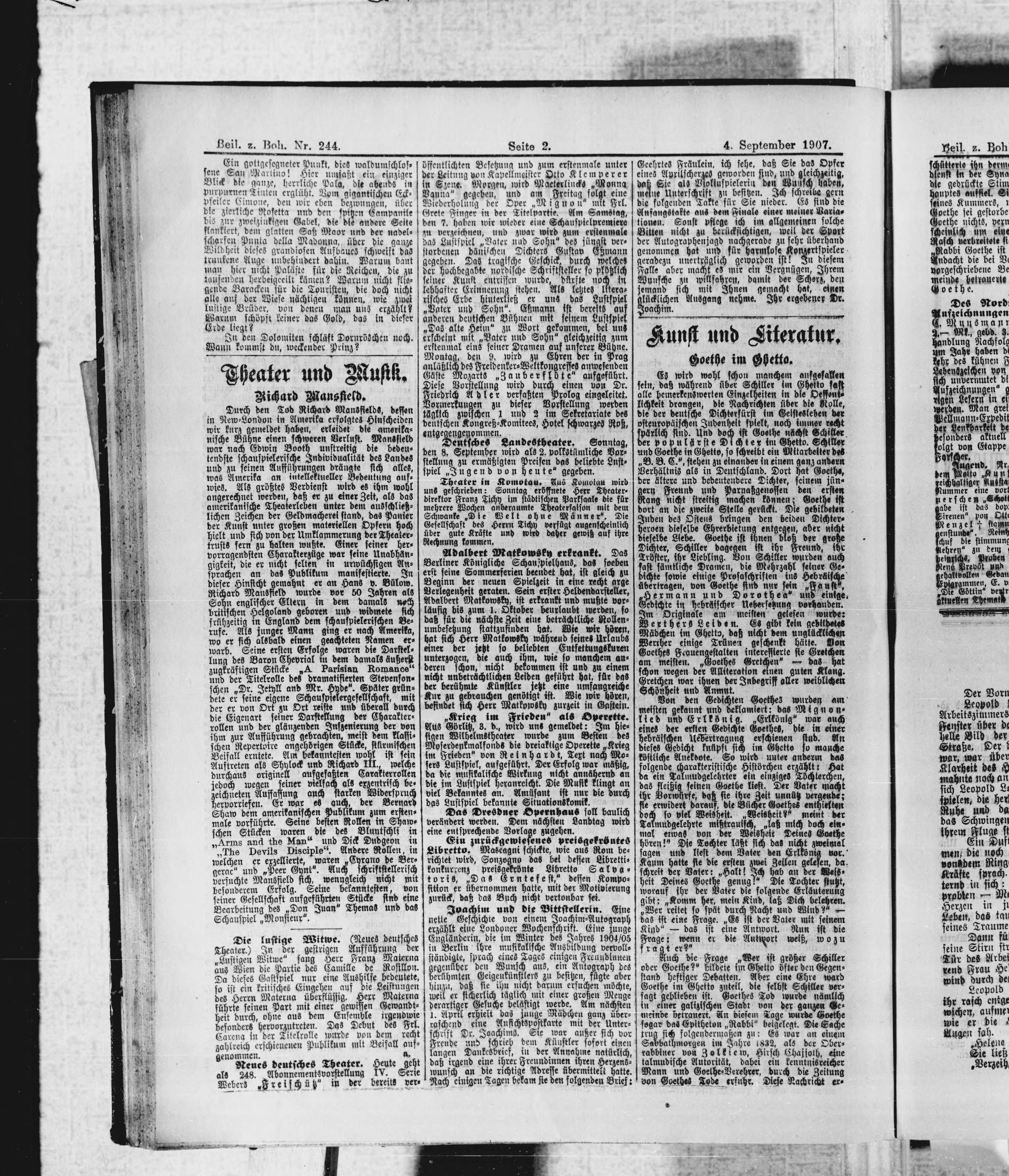 * Datum vydání výtisku: 4.9.1907 Číslo výtisku: 244 Typ výtisku: příloha