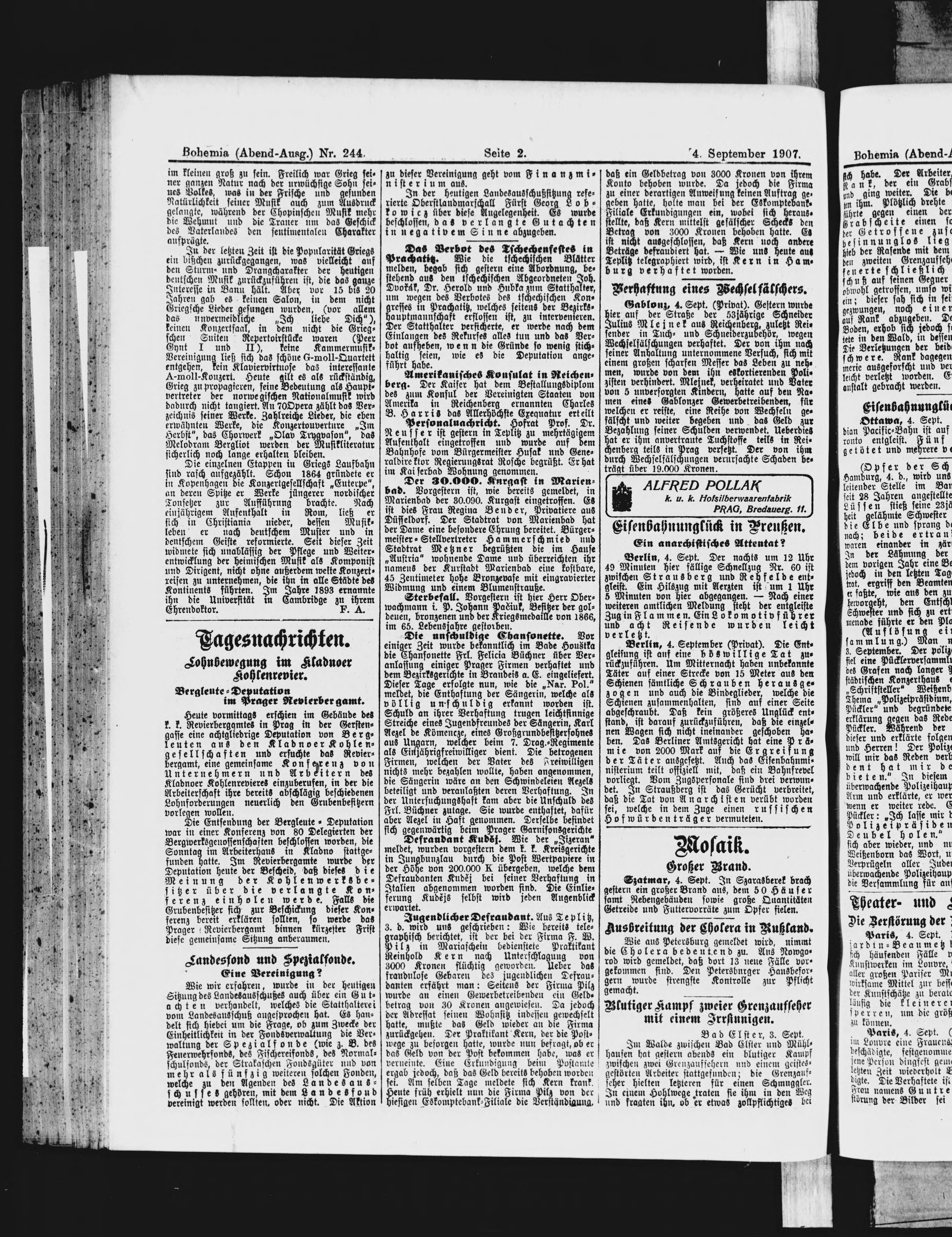 * Datum vydání výtisku: 4.9.1907 Číslo výtisku: 244 Poznámky k výtisku: večerní vydání