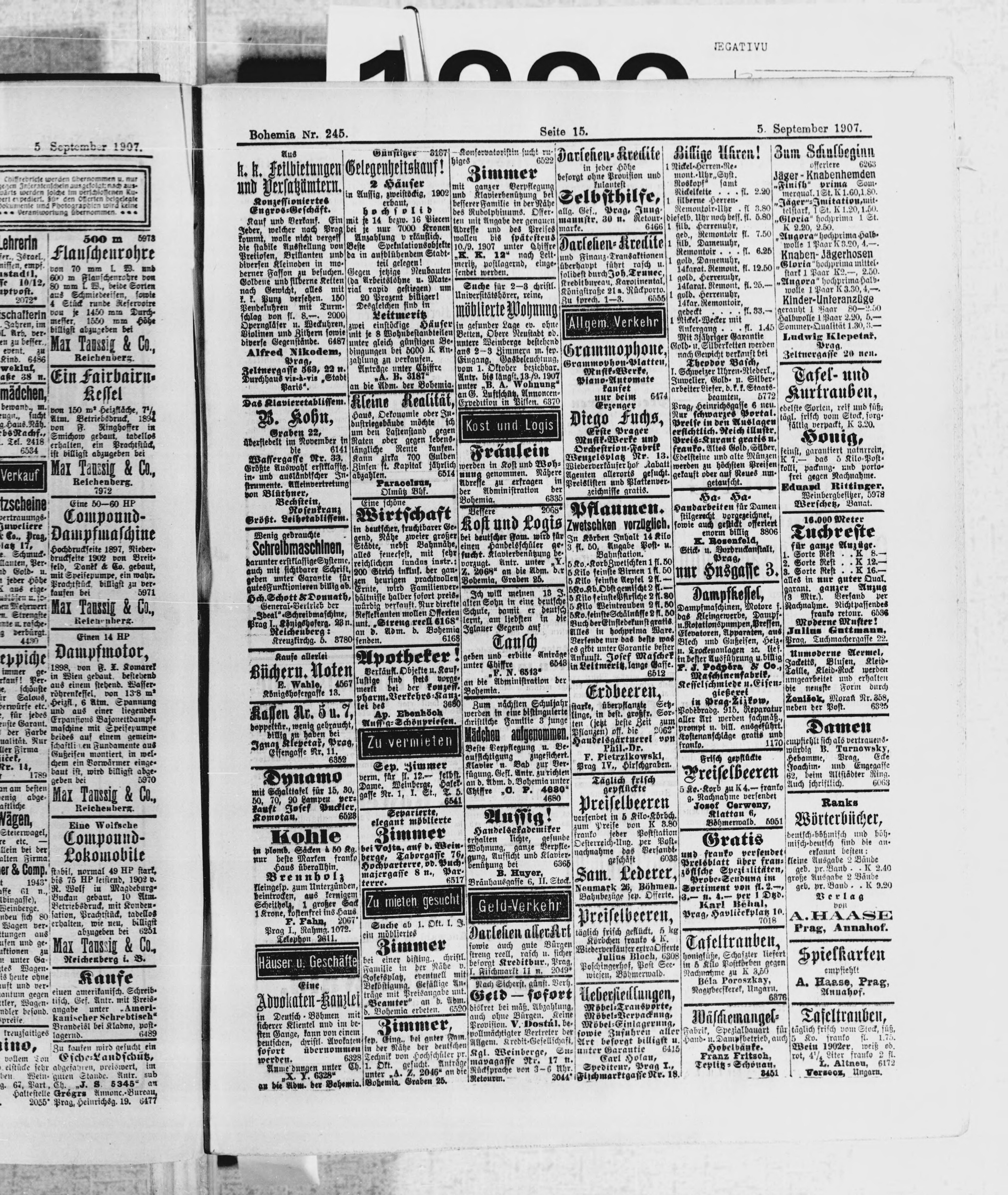* Datum vydání výtisku: 5.9.1907 Číslo výtisku: 245 Poznámky k výtisku: ranní vydání