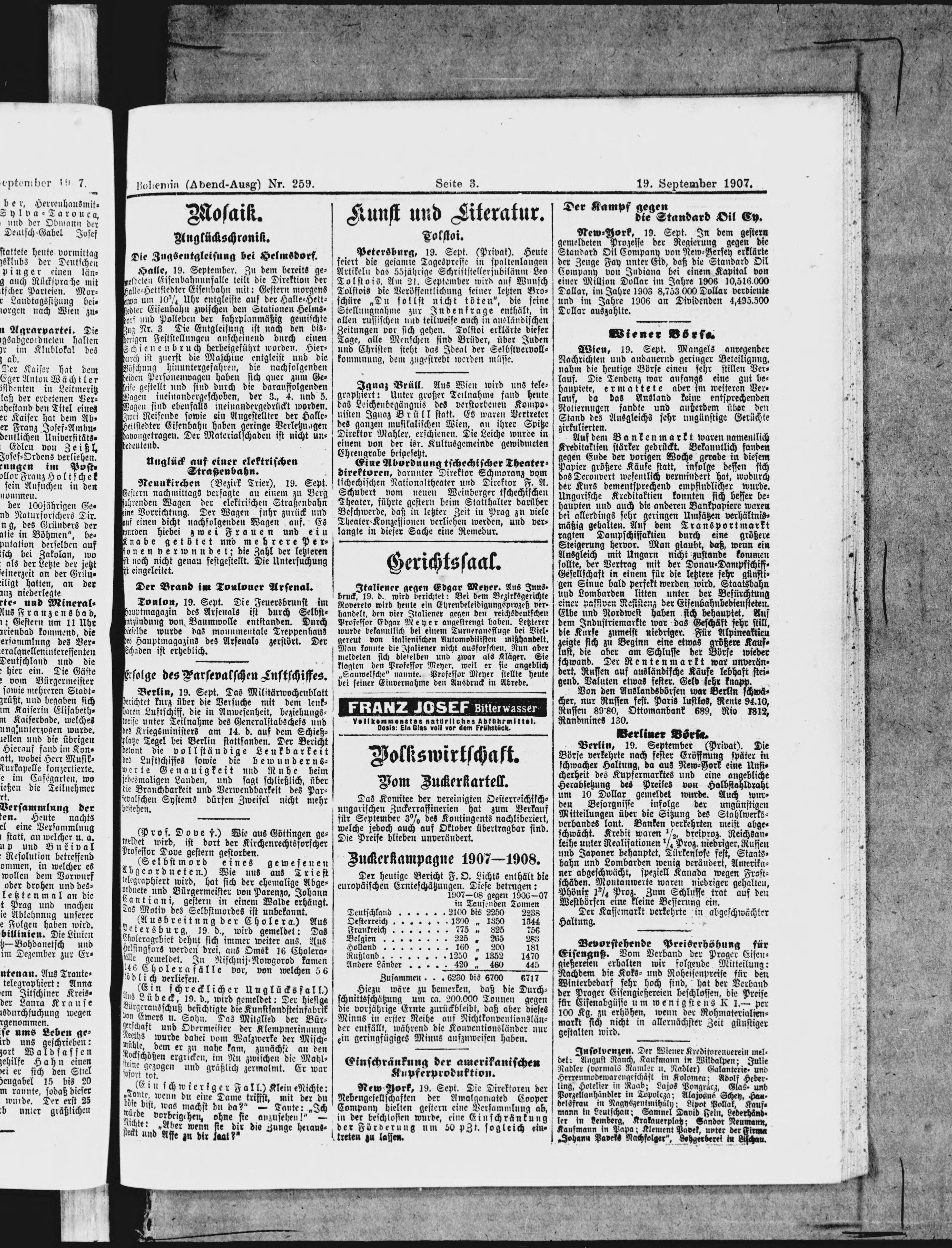 * Datum vydání výtisku: 19.9.1907 Číslo výtisku: 259 Poznámky k výtisku: večerní vydání