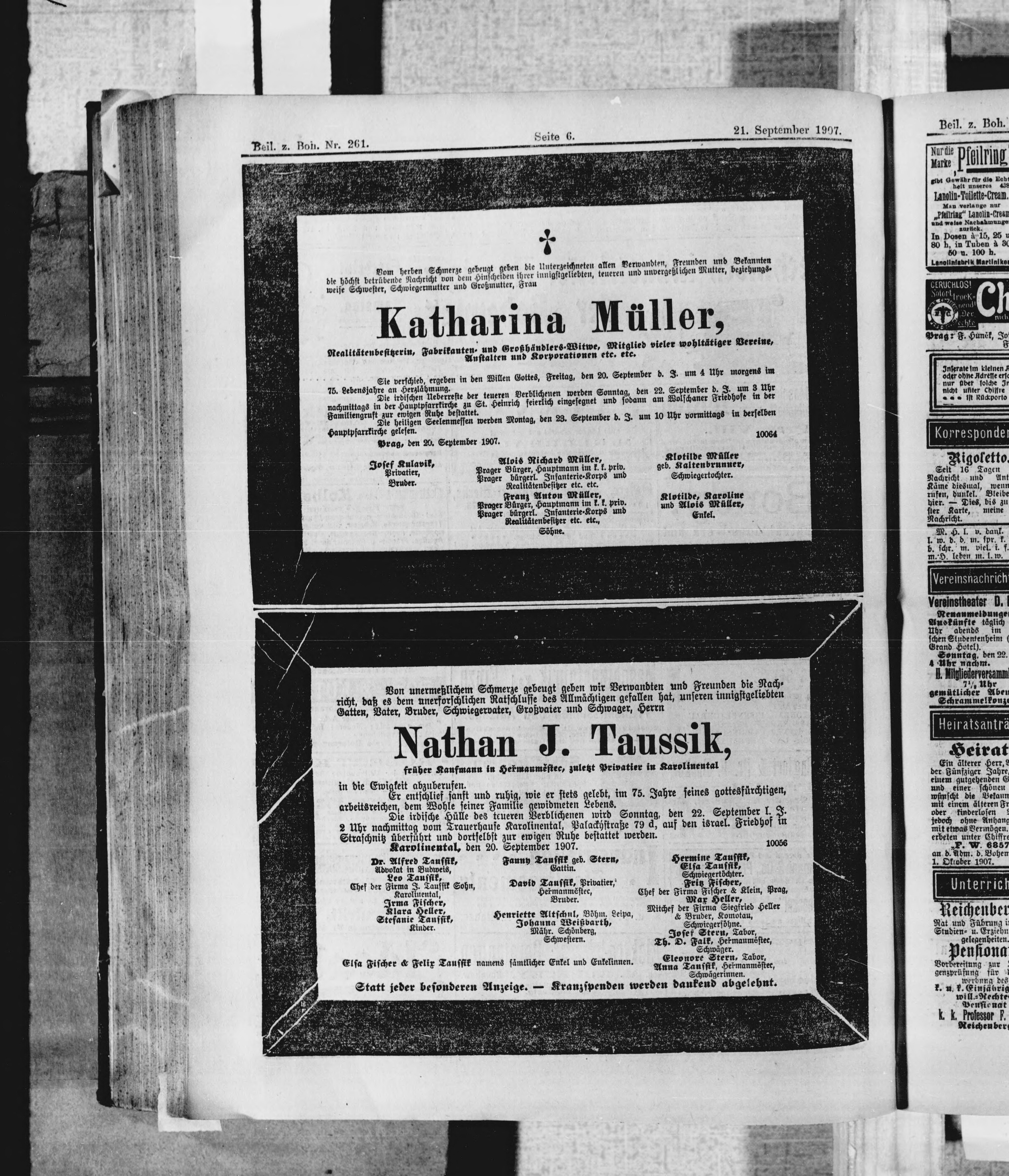 * Datum vydání výtisku: 21.9.1907 Číslo výtisku: 261 Typ výtisku: příloha