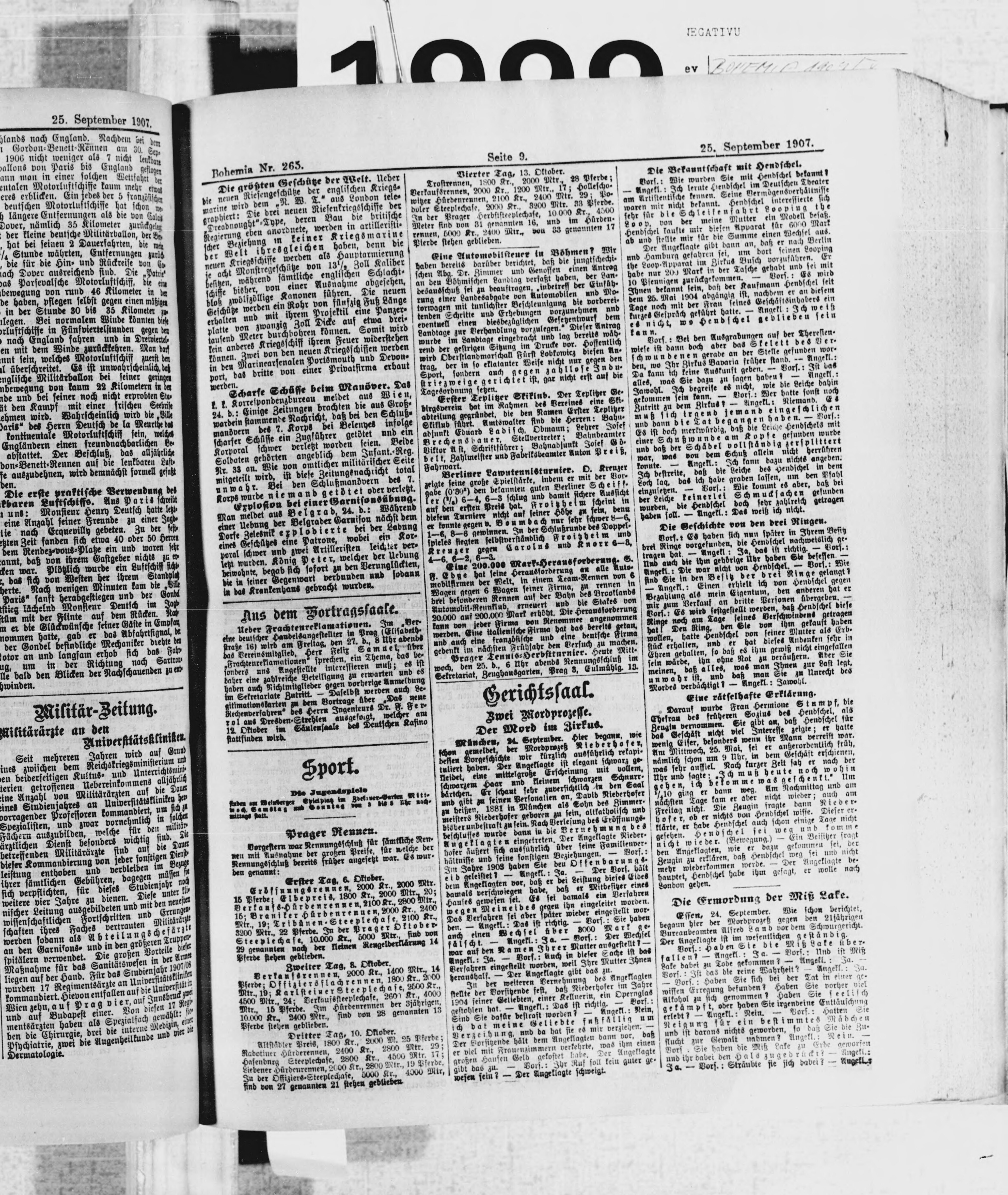 * Datum vydání výtisku: 25.9.1907 Číslo výtisku: 265 Poznámky k výtisku: ranní vydání