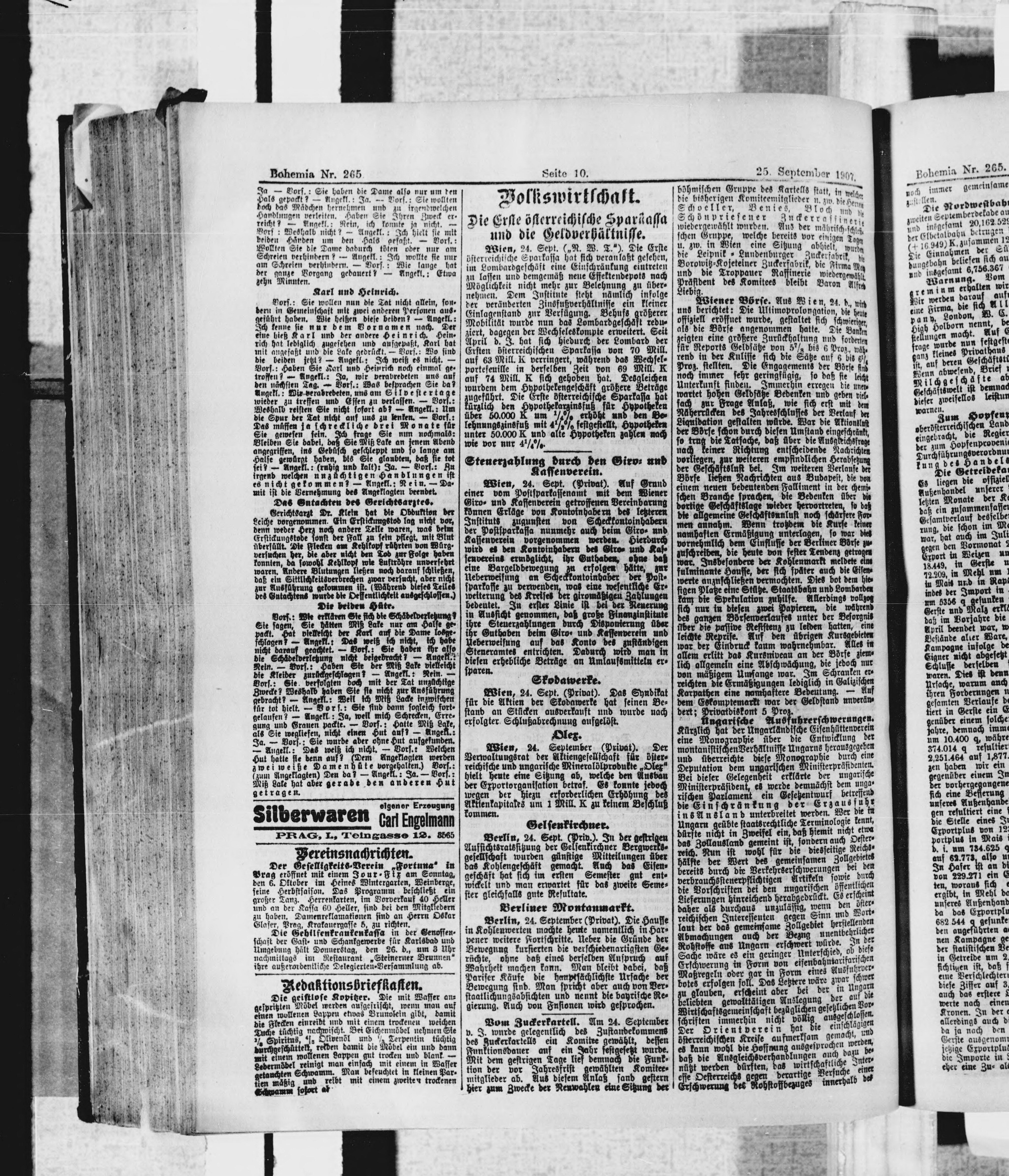 * Datum vydání výtisku: 25.9.1907 Číslo výtisku: 265 Poznámky k výtisku: ranní vydání