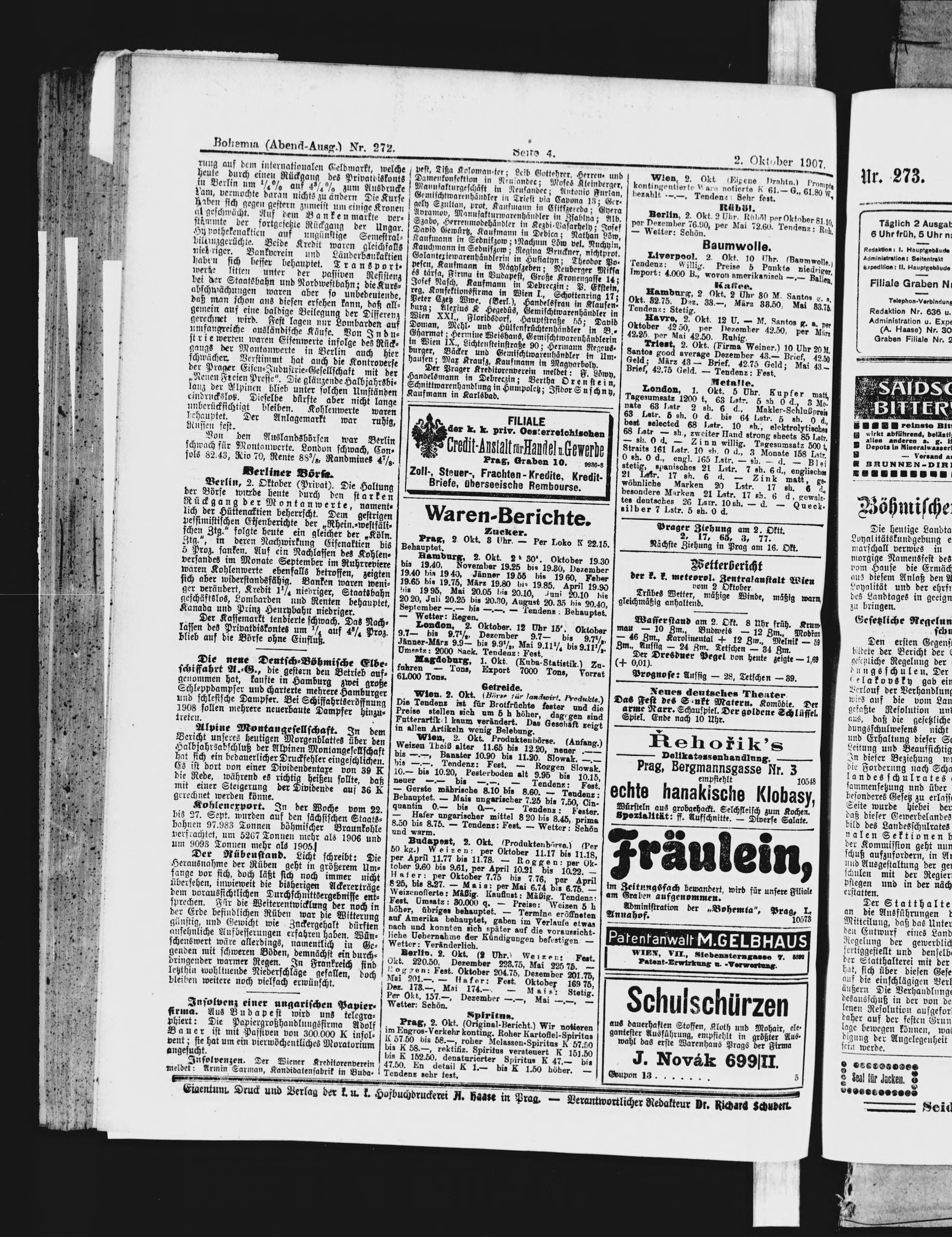 * Datum vydání výtisku: 2.10.1907 Číslo výtisku: 272 Poznámky k výtisku: večerní vydání