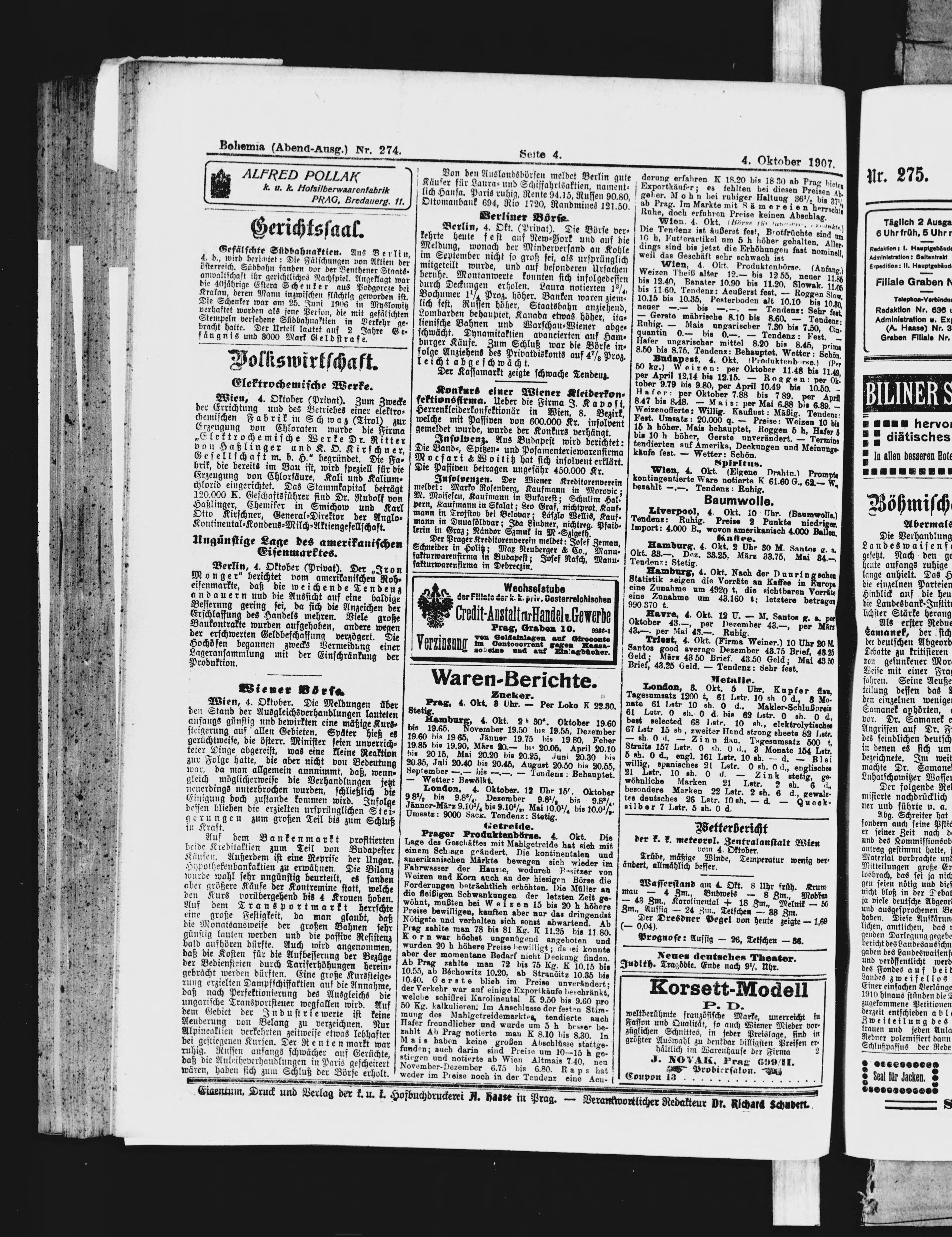 * Datum vydání výtisku: 4.10.1907 Číslo výtisku: 274 Poznámky k výtisku: večerní vydání