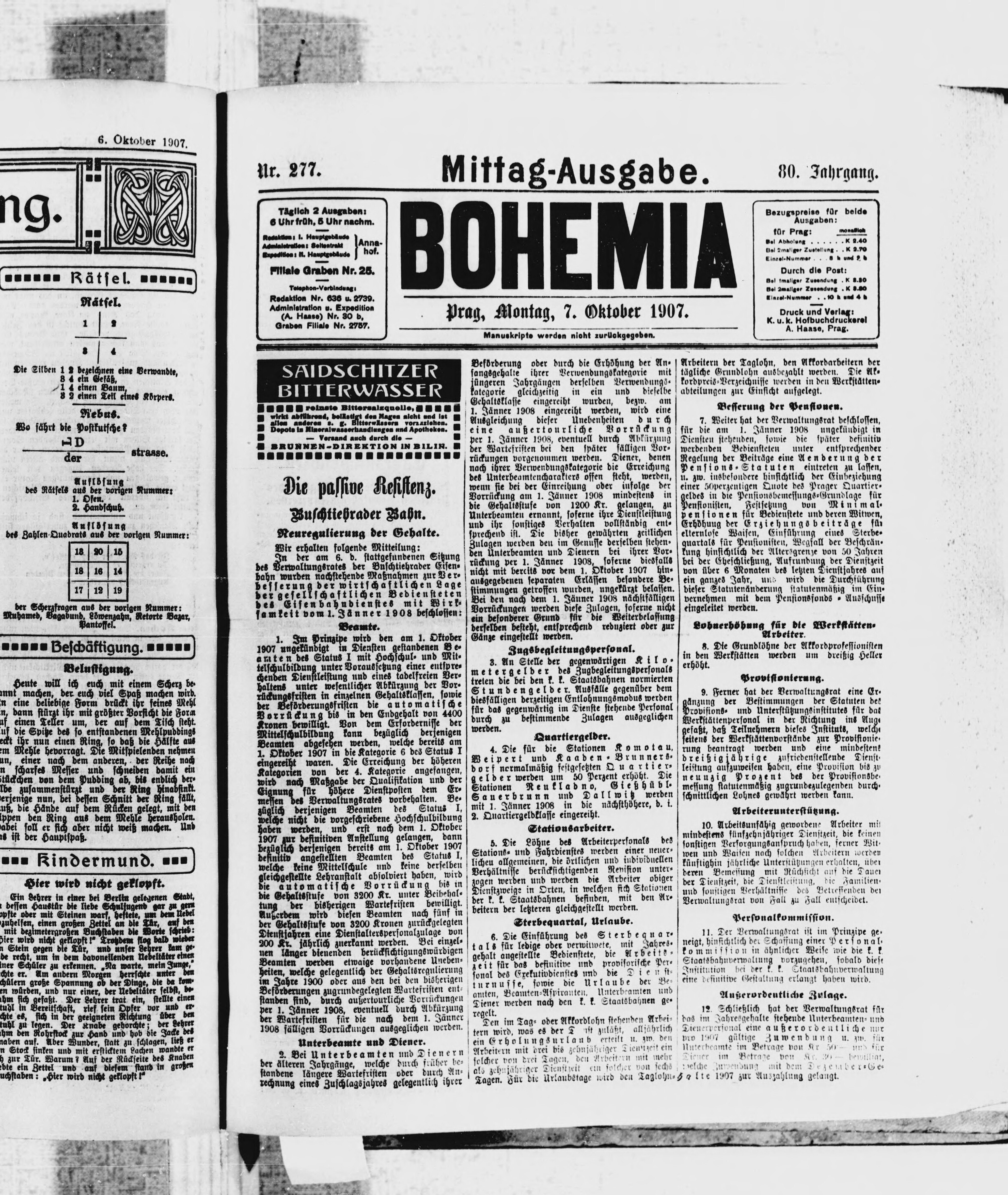 * Datum vydání výtisku: 7.10.1907 Číslo výtisku: 277 Poznámky k výtisku: polední vydání
