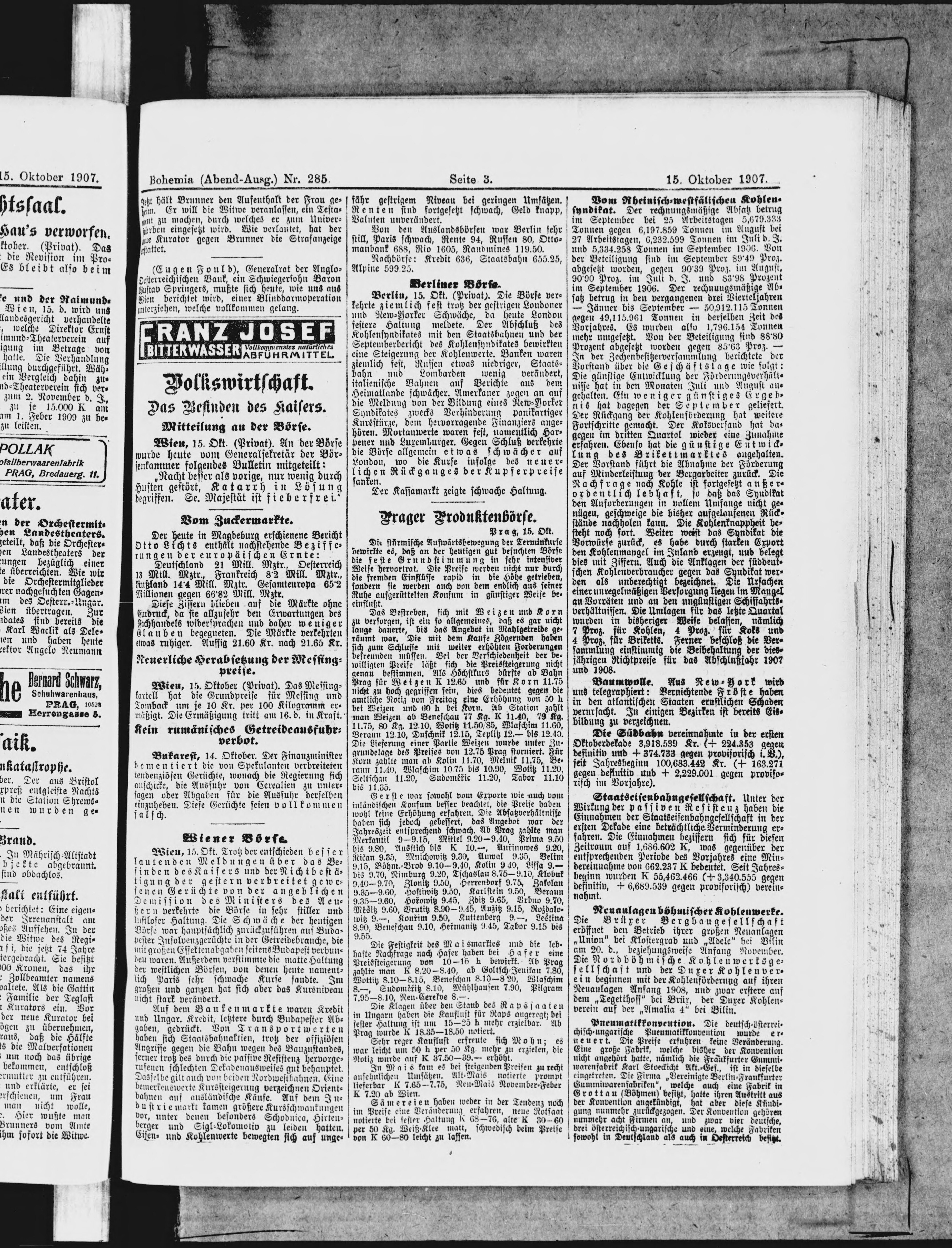 * Datum vydání výtisku: 15.10.1907 Číslo výtisku: 285 Poznámky k výtisku: večerní vydání