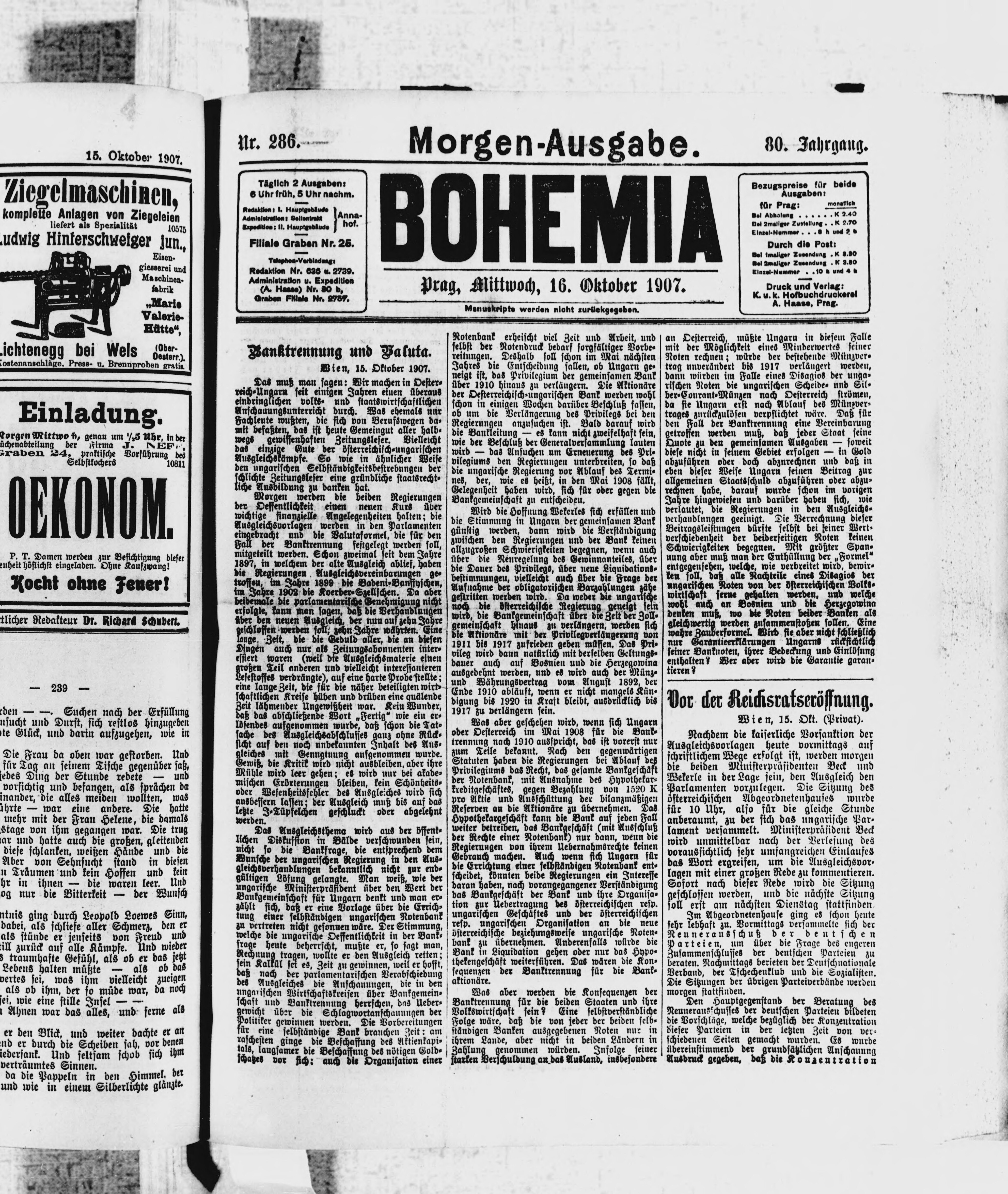* Datum vydání výtisku: 16.10.1907 Číslo výtisku: 286 Poznámky k výtisku: ranní vydání