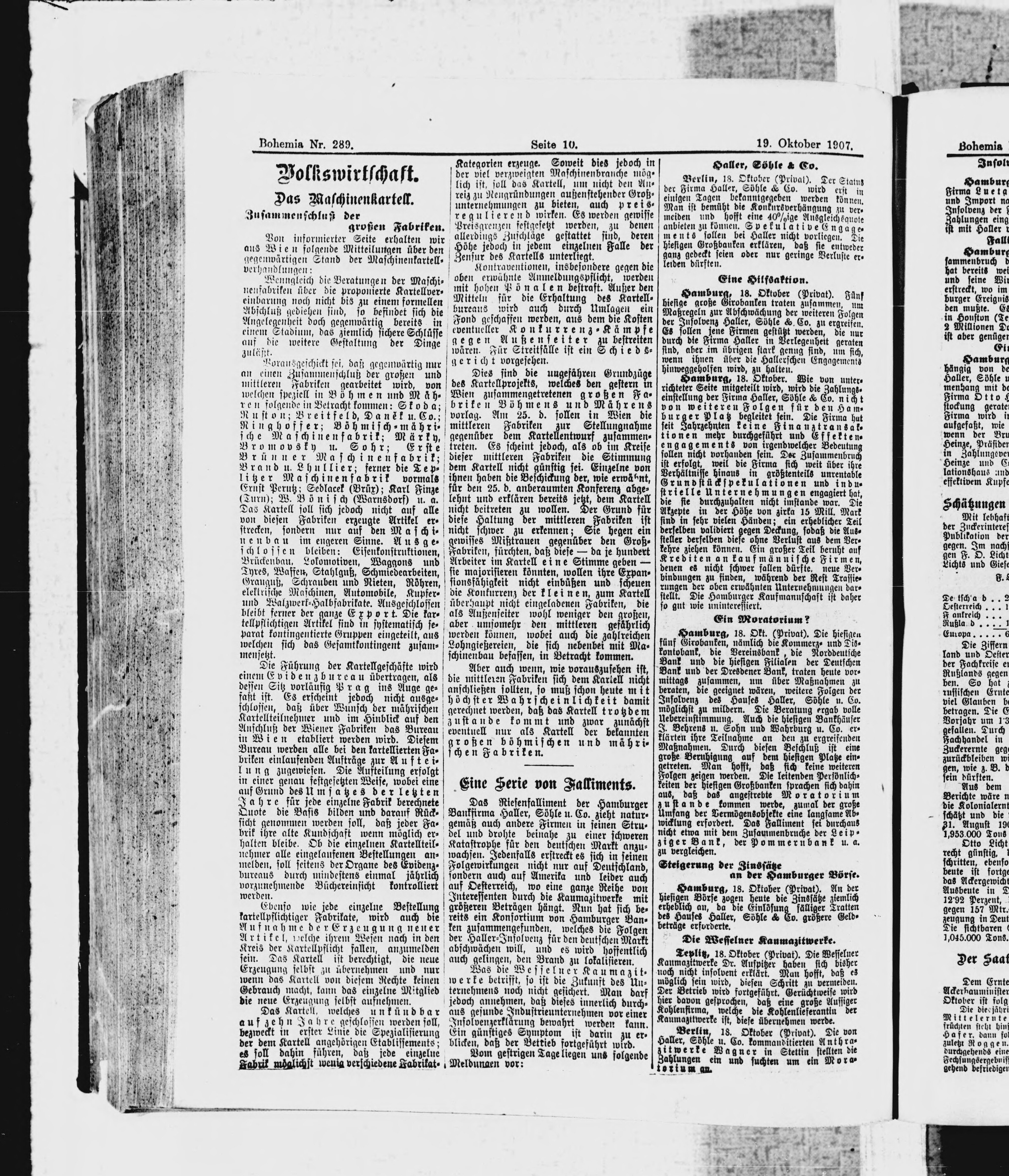 * Datum vydání výtisku: 19.10.1907 Číslo výtisku: 289 Poznámky k výtisku: ranní vydání