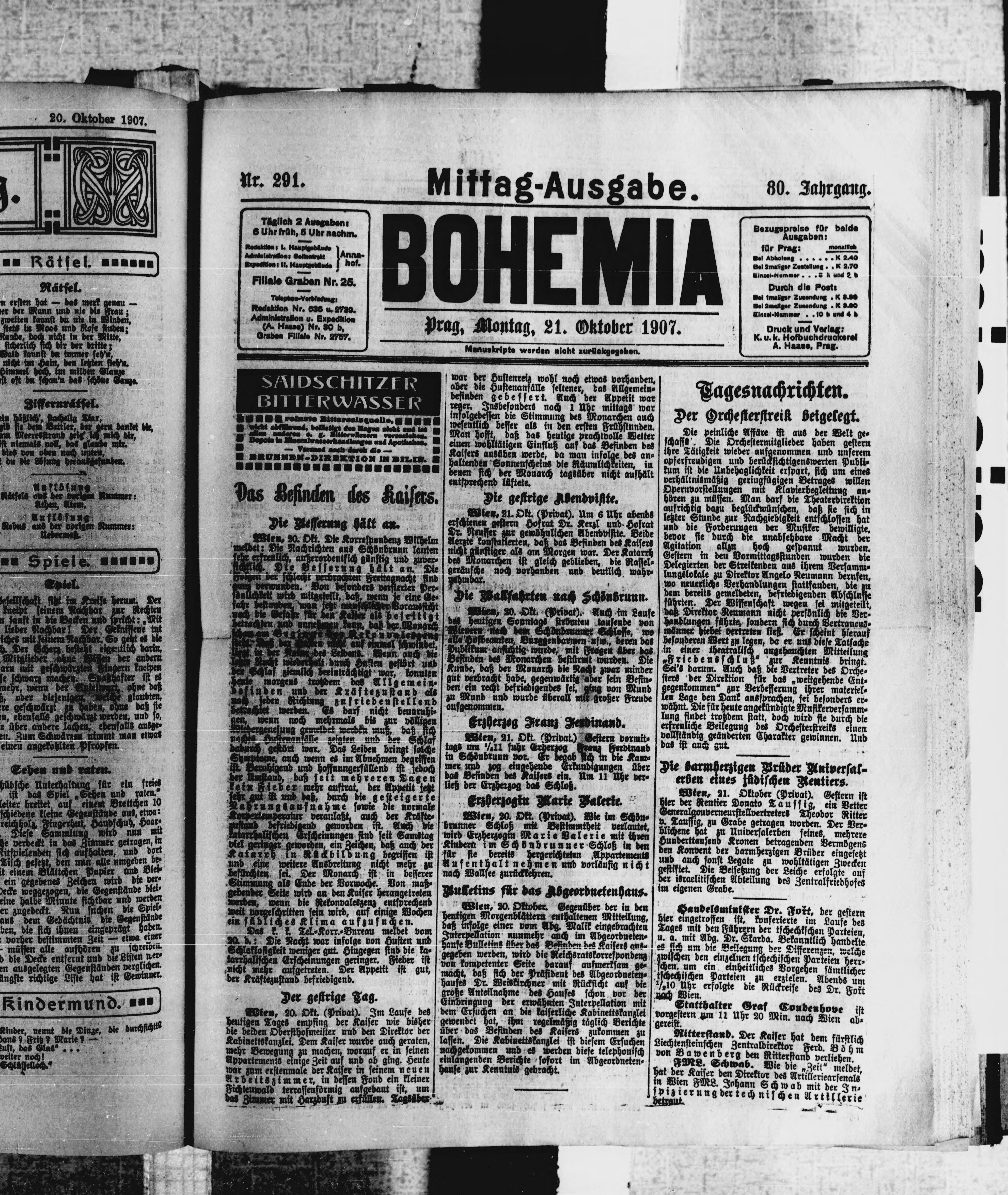 * Datum vydání výtisku: 21.10.1907 Číslo výtisku: 291 Poznámky k výtisku: polední vydání