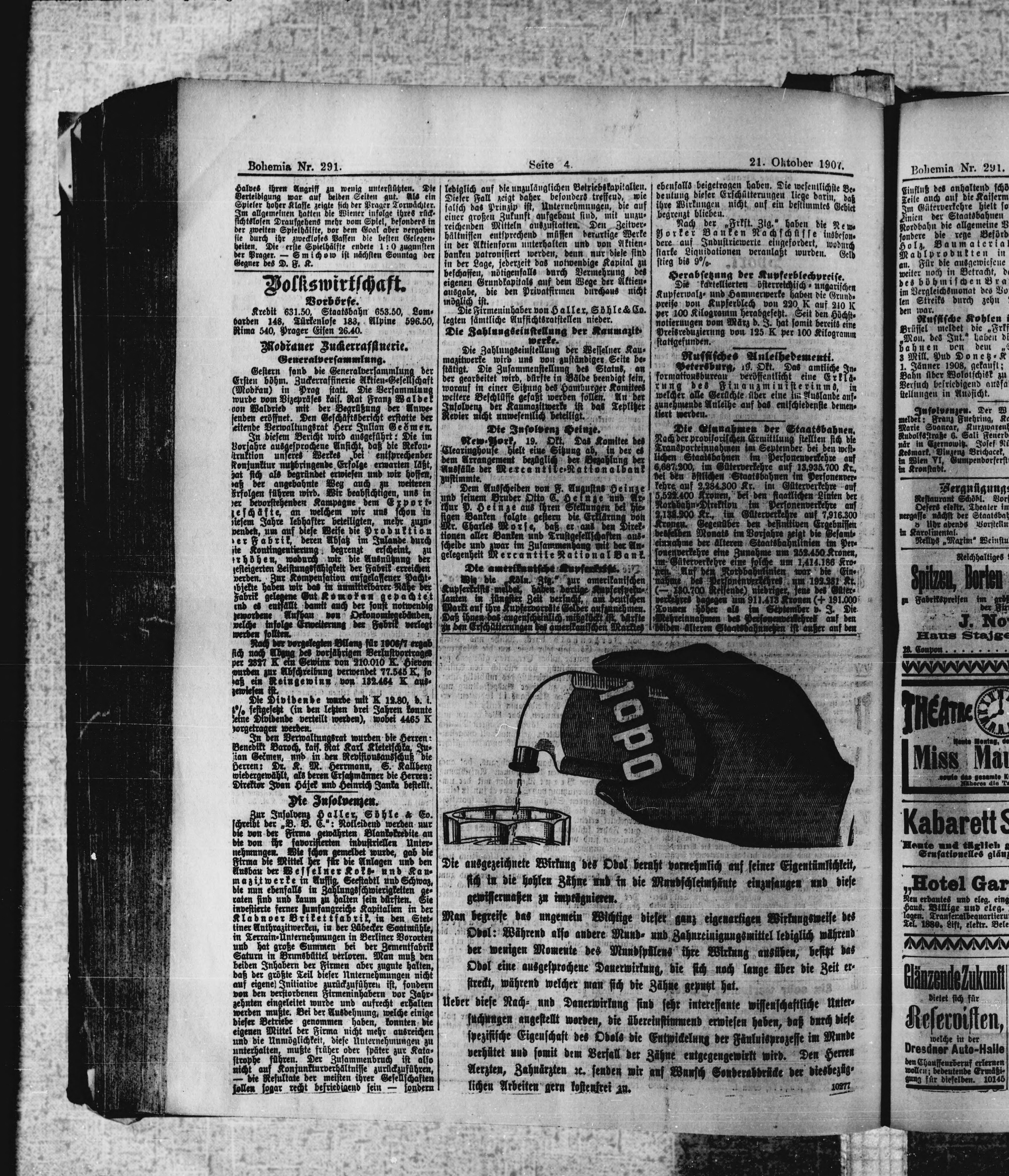 * Datum vydání výtisku: 21.10.1907 Číslo výtisku: 291 Poznámky k výtisku: polední vydání
