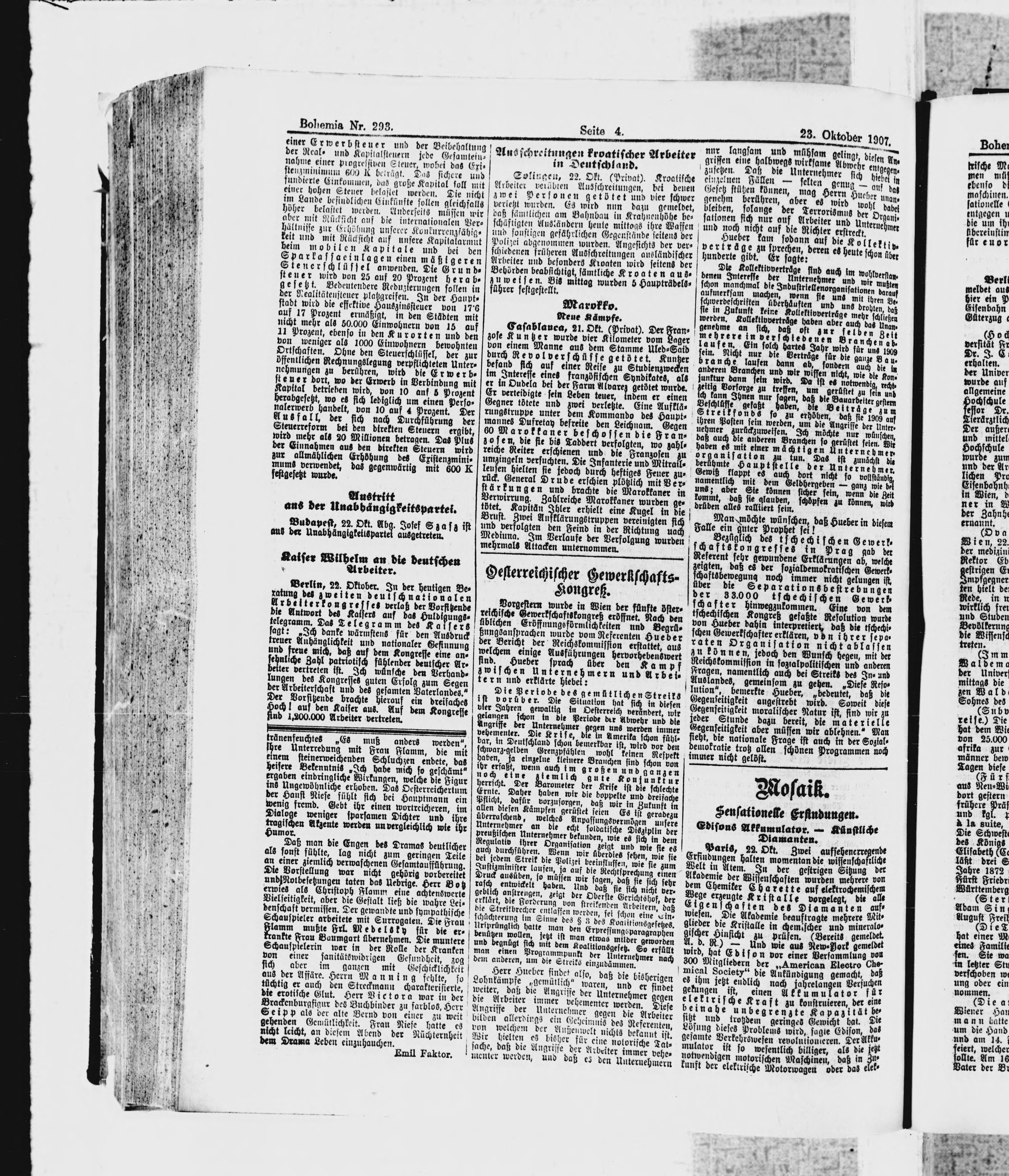 * Datum vydání výtisku: 23.10.1907 Číslo výtisku: 293 Poznámky k výtisku: ranní vydání