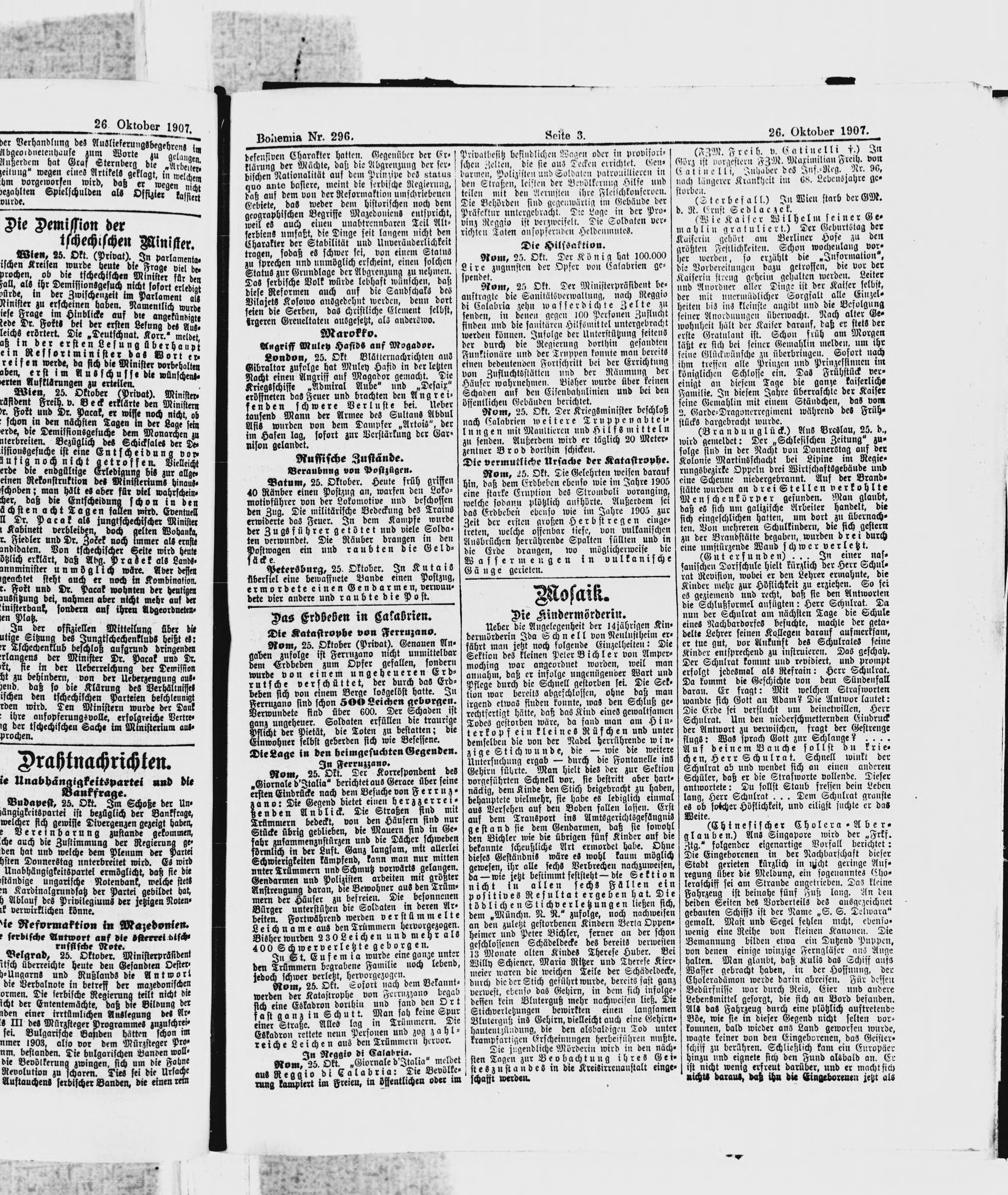 * Datum vydání výtisku: 26.10.1907 Číslo výtisku: 296 Poznámky k výtisku: ranní vydání