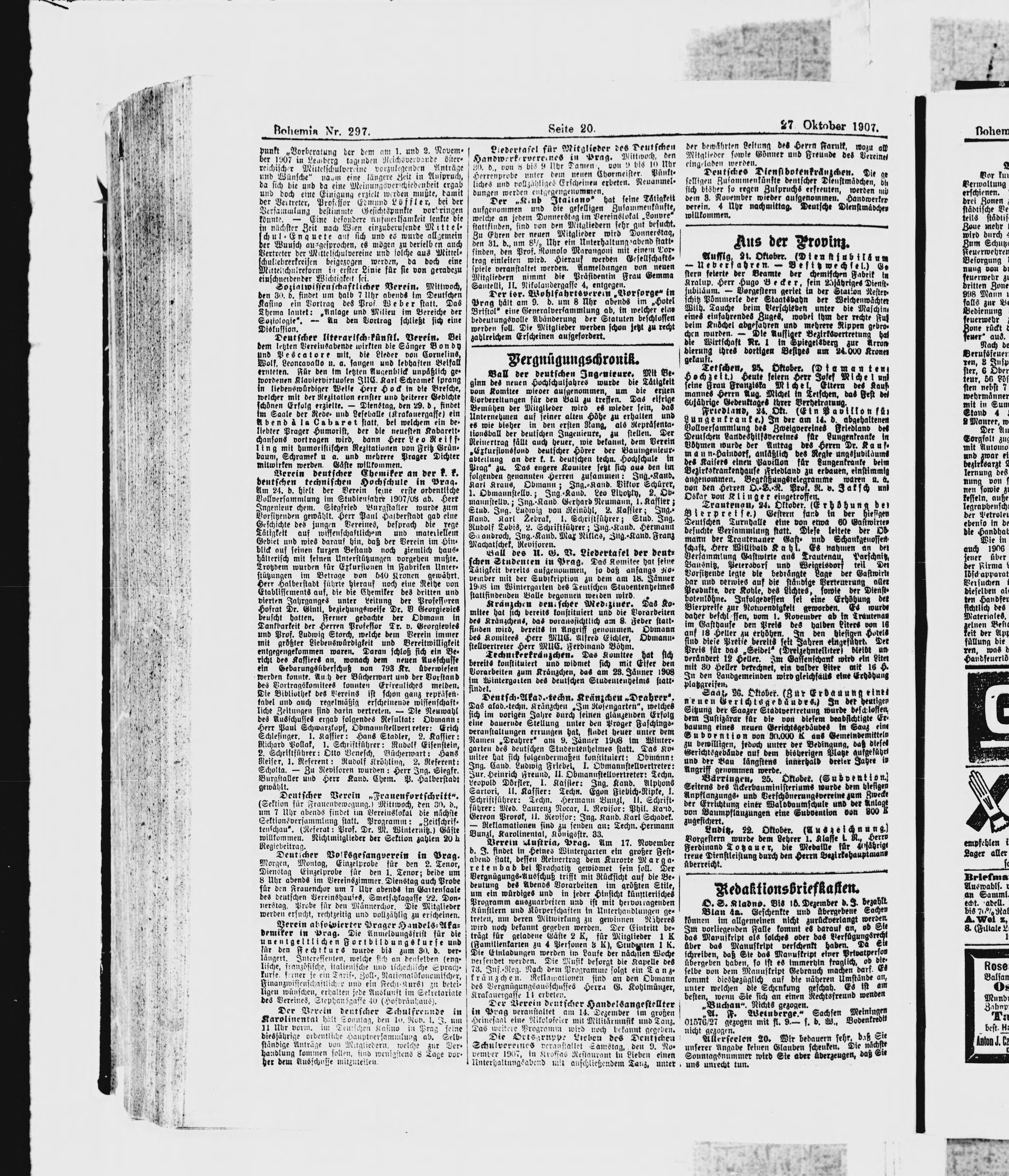 * Datum vydání výtisku: 27.10.1907 Číslo výtisku: 297 Poznámky k výtisku: ranní vydání
