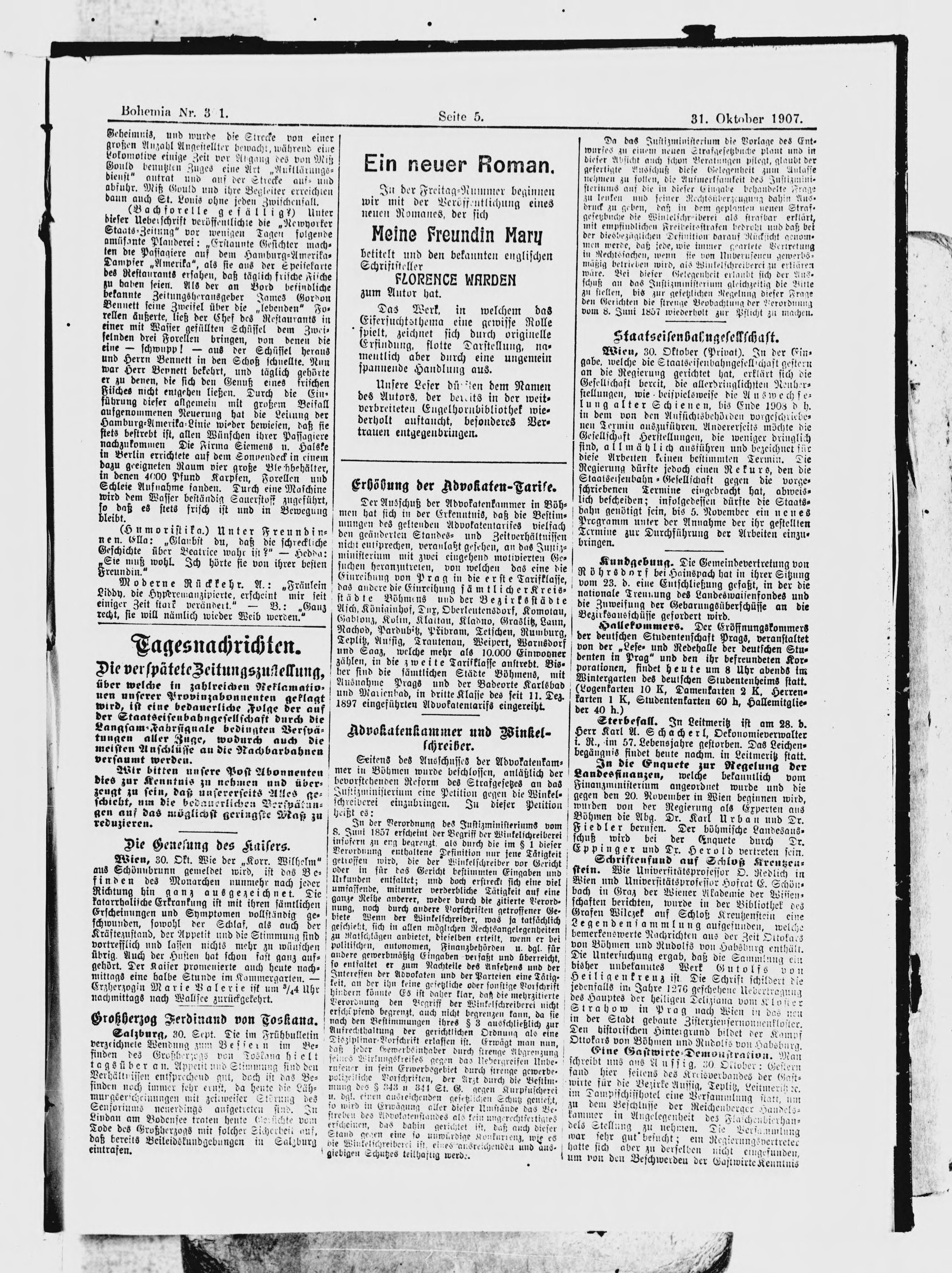 * Datum vydání výtisku: 31.10.1907 Číslo výtisku: 301 Poznámky k výtisku: ranní vydání