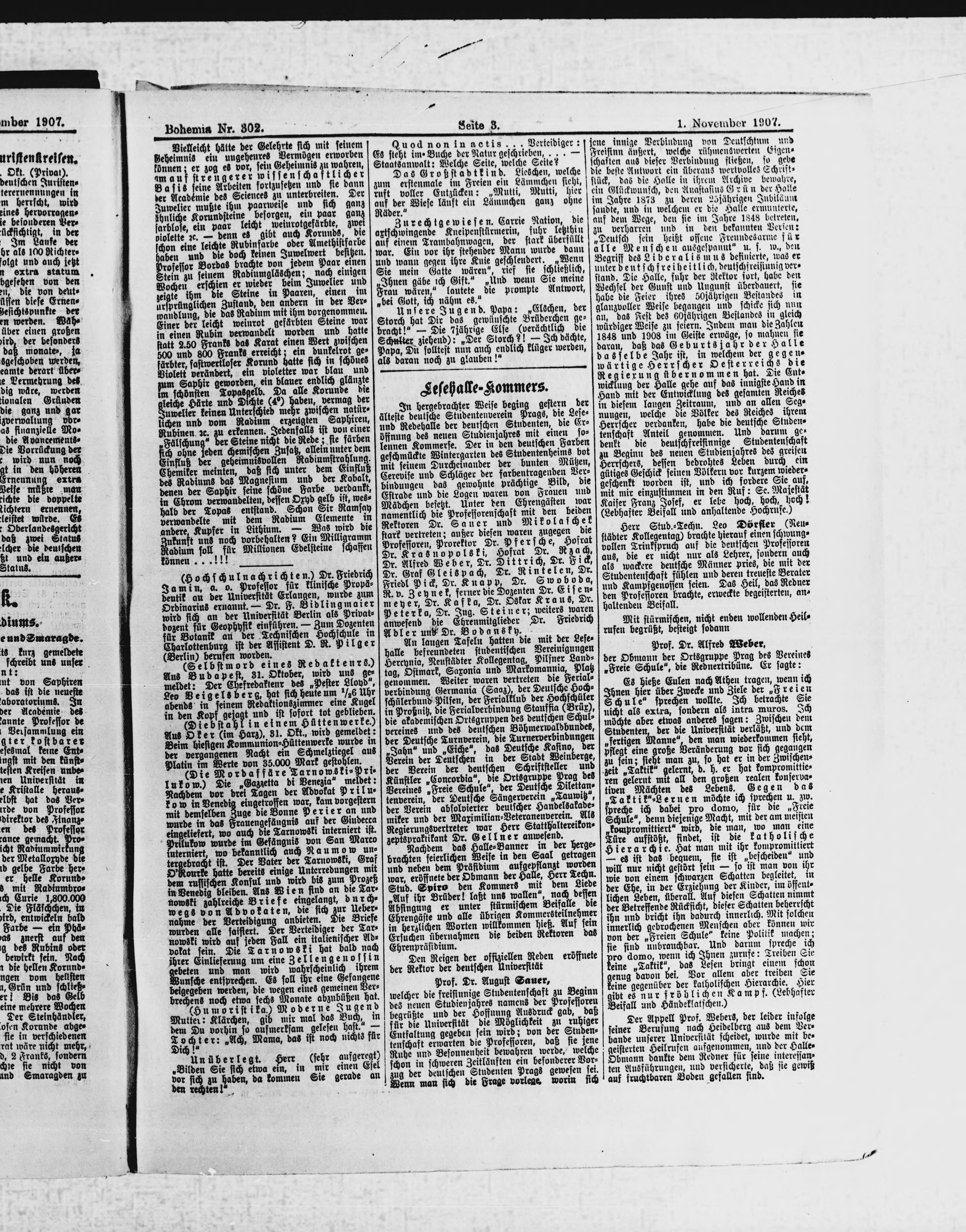 * Datum vydání výtisku: 1.11.1907 Číslo výtisku: 302 Poznámky k výtisku: ranní vydání