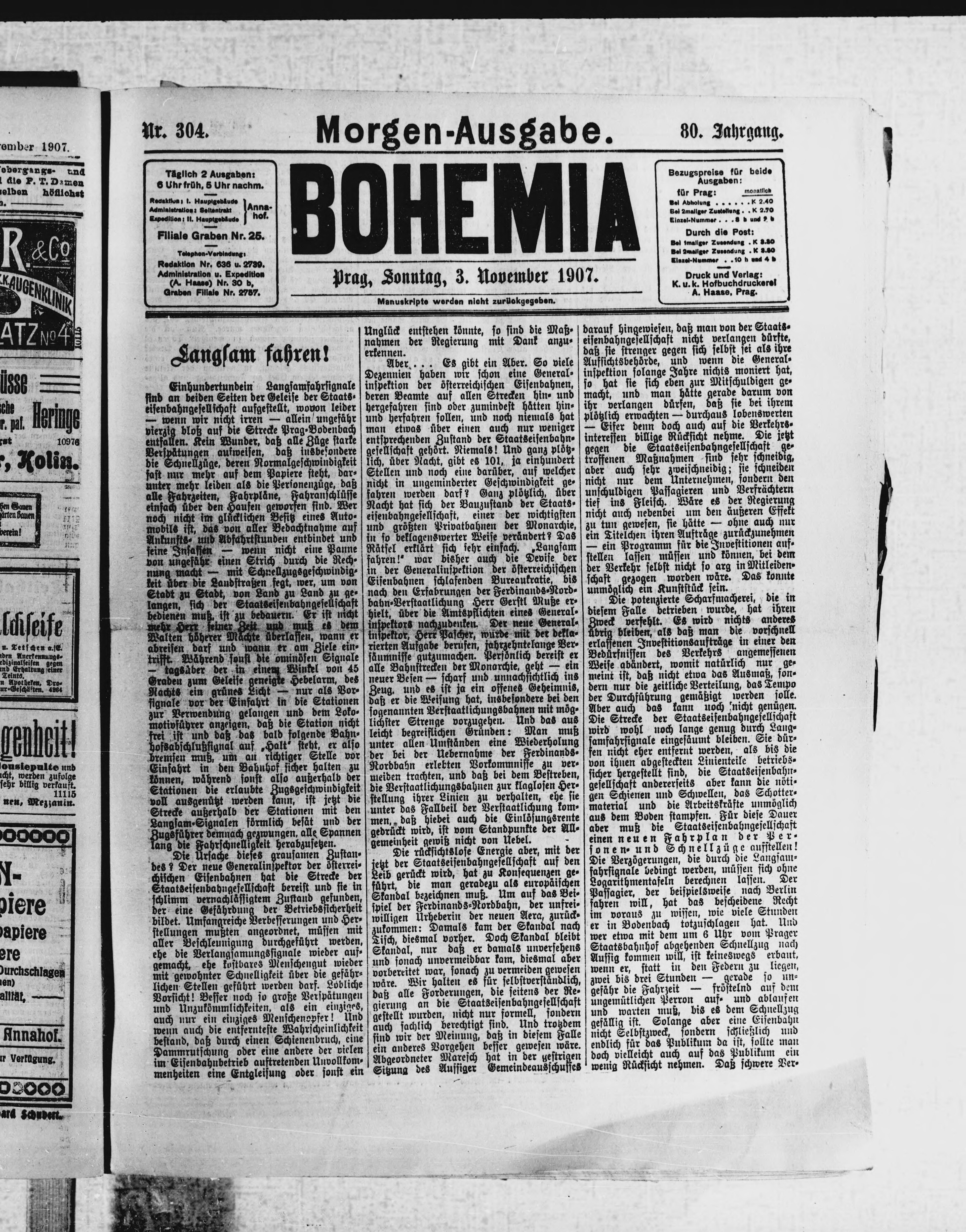 * Datum vydání výtisku: 3.11.1907 Číslo výtisku: 304 Poznámky k výtisku: ranní vydání