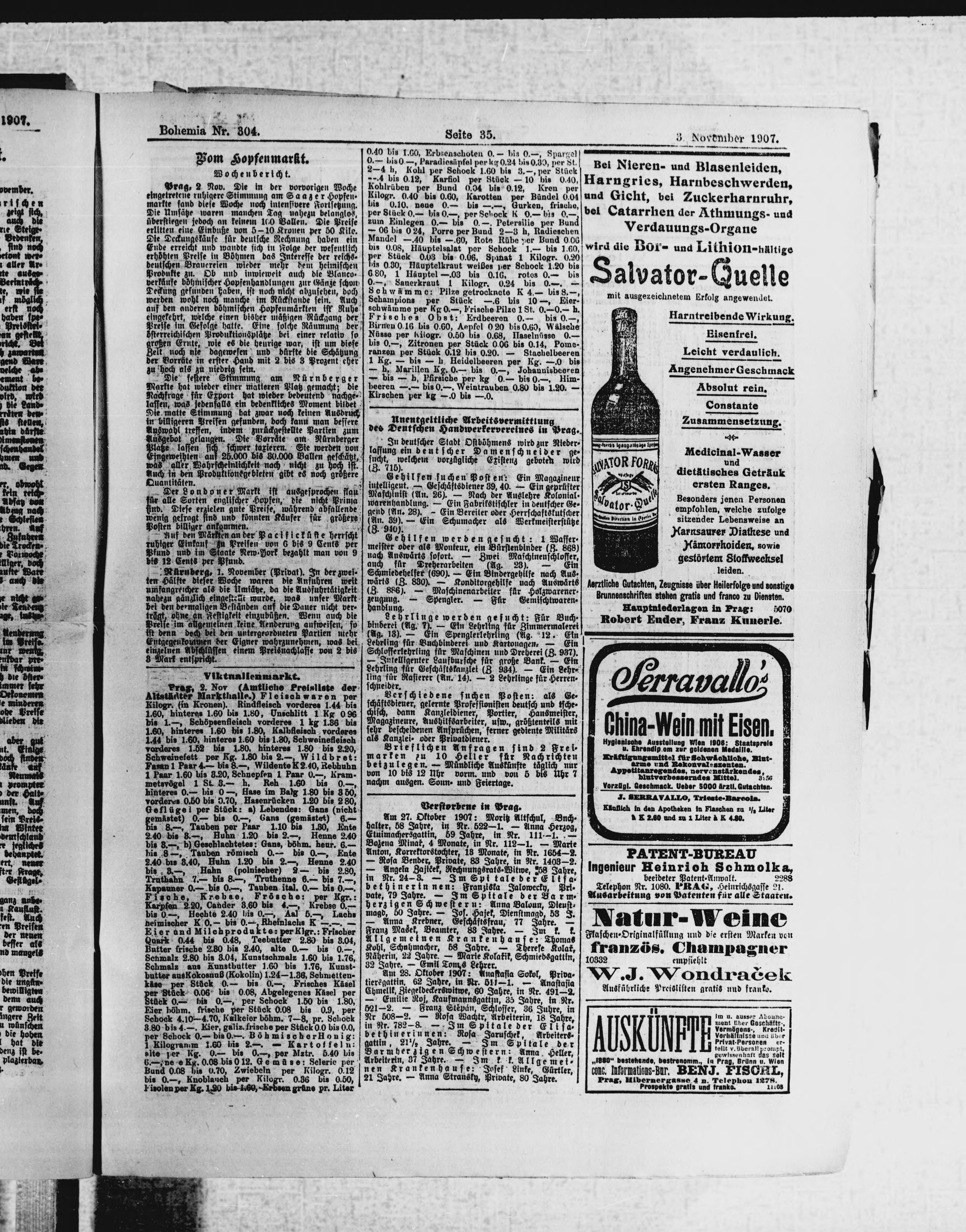 * Datum vydání výtisku: 3.11.1907 Číslo výtisku: 304 Poznámky k výtisku: ranní vydání