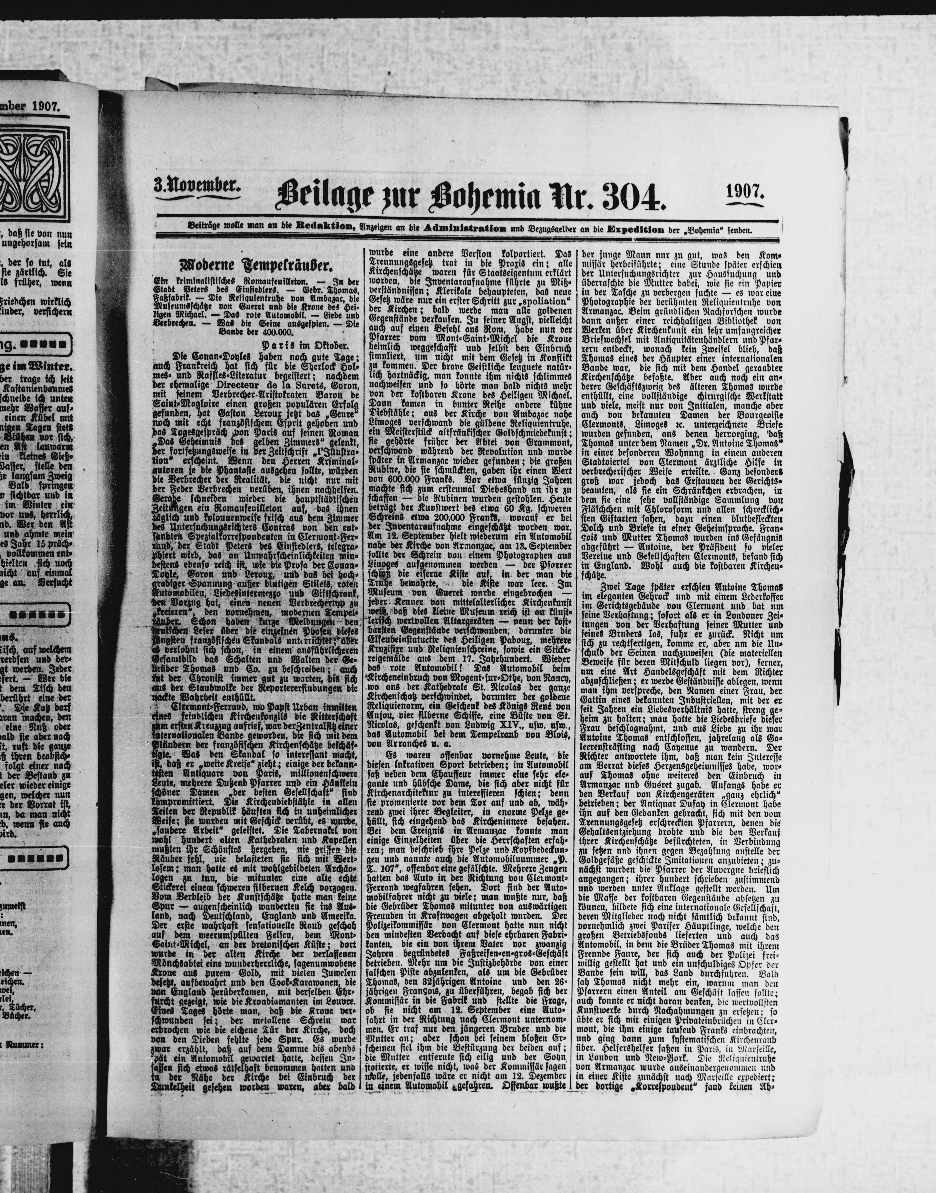 * Datum vydání výtisku: 3.11.1907 Číslo výtisku: 304 Typ výtisku: příloha
