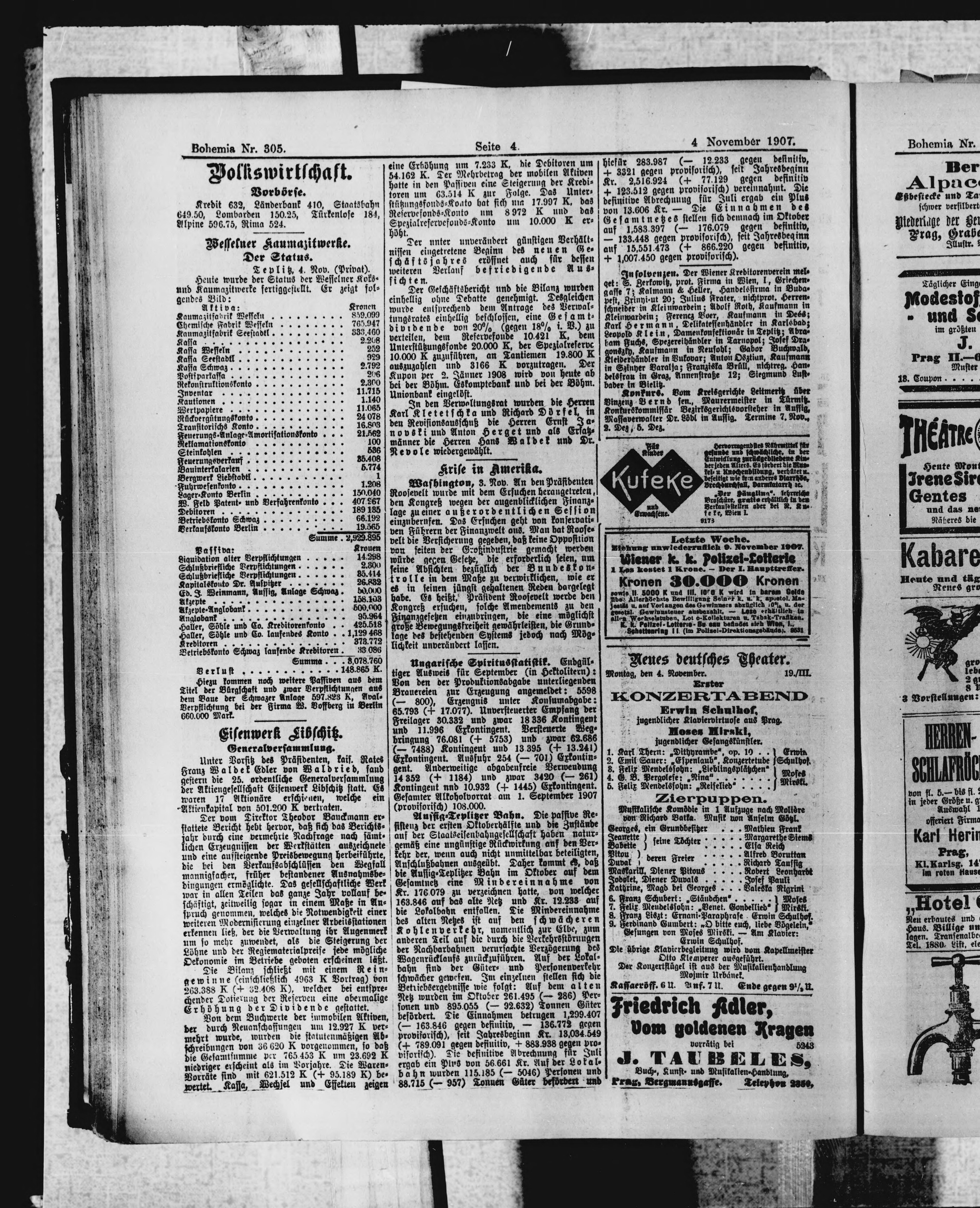 * Datum vydání výtisku: 4.11.1907 Číslo výtisku: 305 Poznámky k výtisku: polední vydání