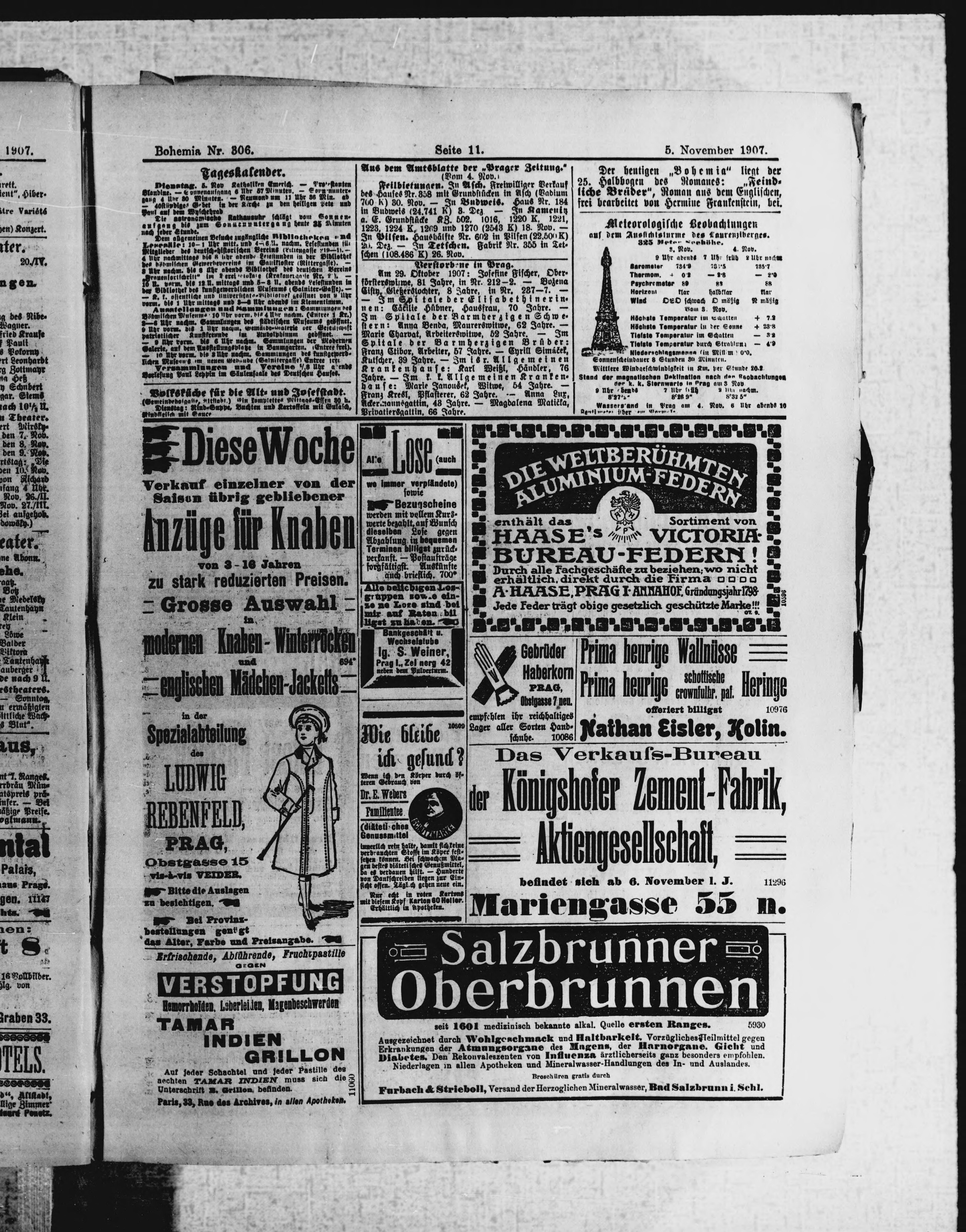 * Datum vydání výtisku: 5.11.1907 Číslo výtisku: 306 Poznámky k výtisku: ranní vydání
