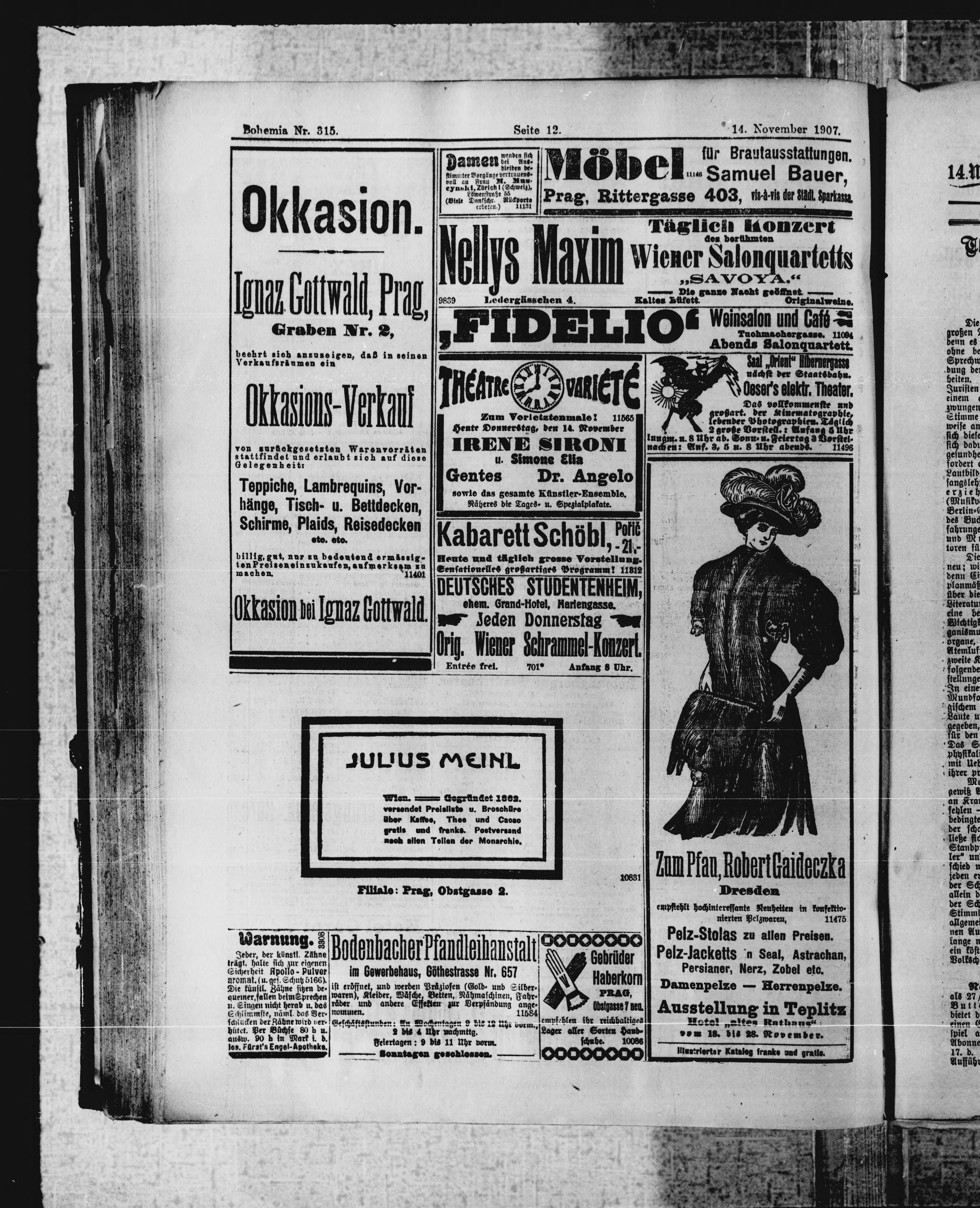 * Datum vydání výtisku: 14.11.1907 Číslo výtisku: 315 Poznámky k výtisku: ranní vydání