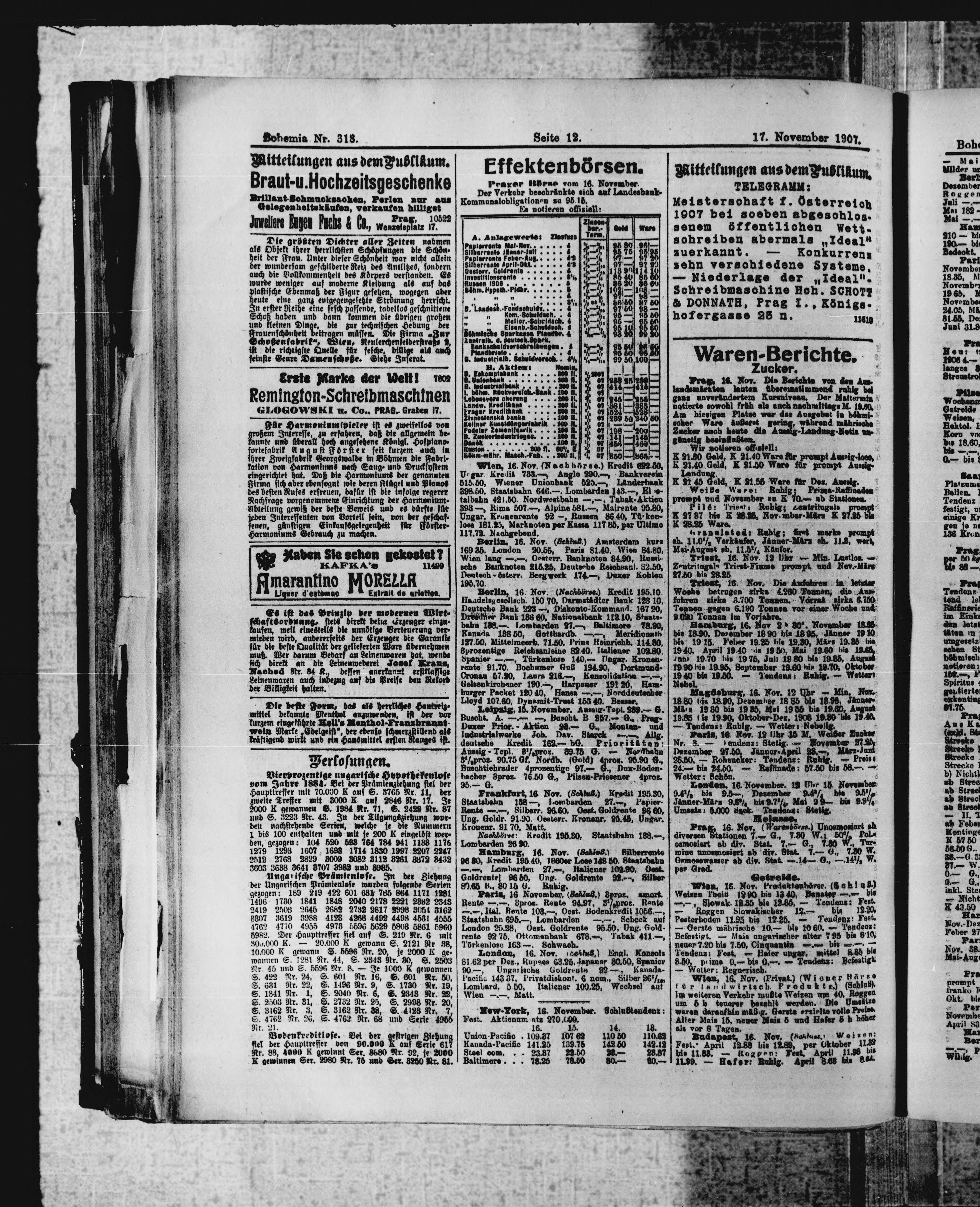 * Datum vydání výtisku: 17.11.1907 Číslo výtisku: 318 Poznámky k výtisku: ranní vydání