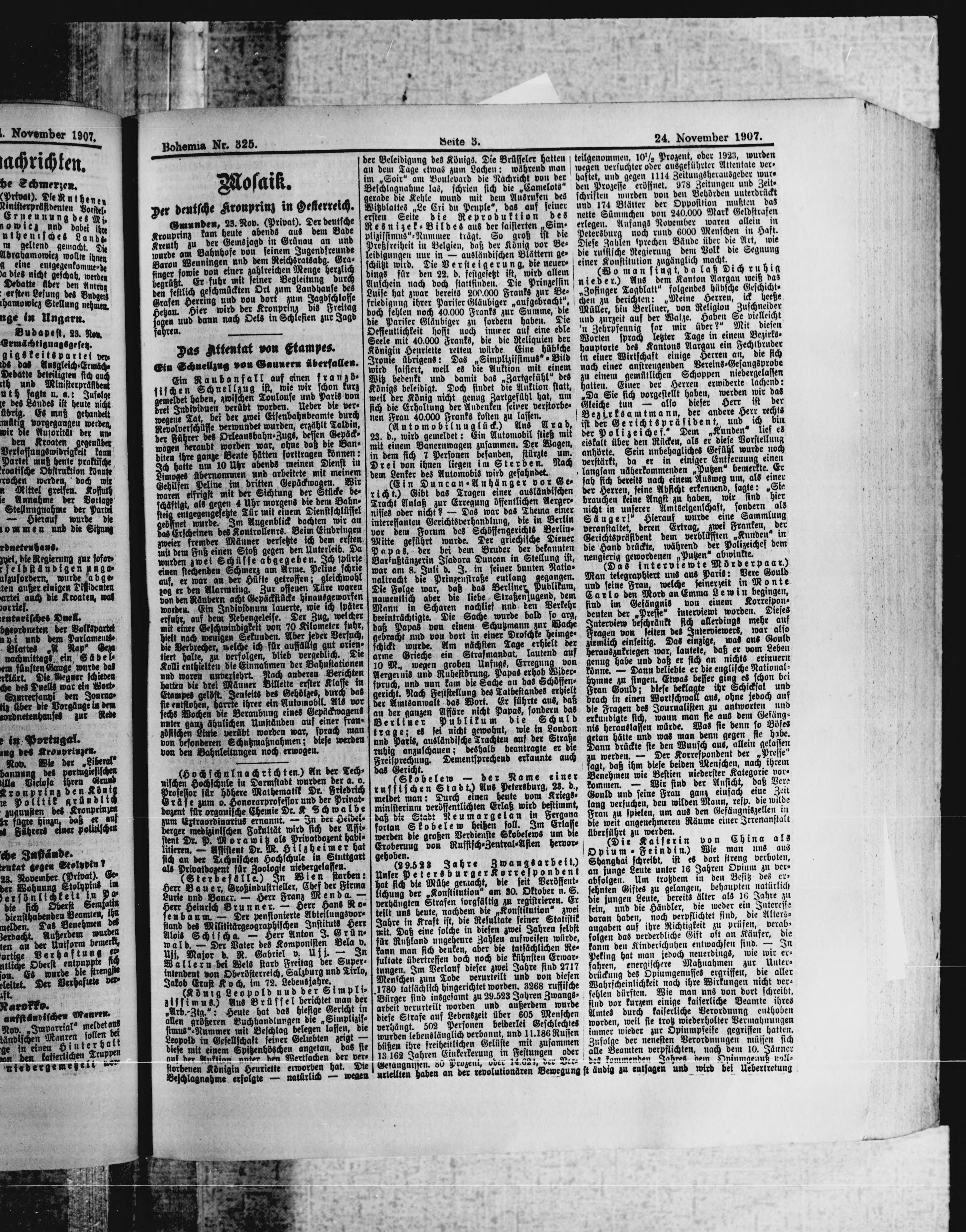 * Datum vydání výtisku: 24.11.1907 Číslo výtisku: 325 Poznámky k výtisku: ranní vydání