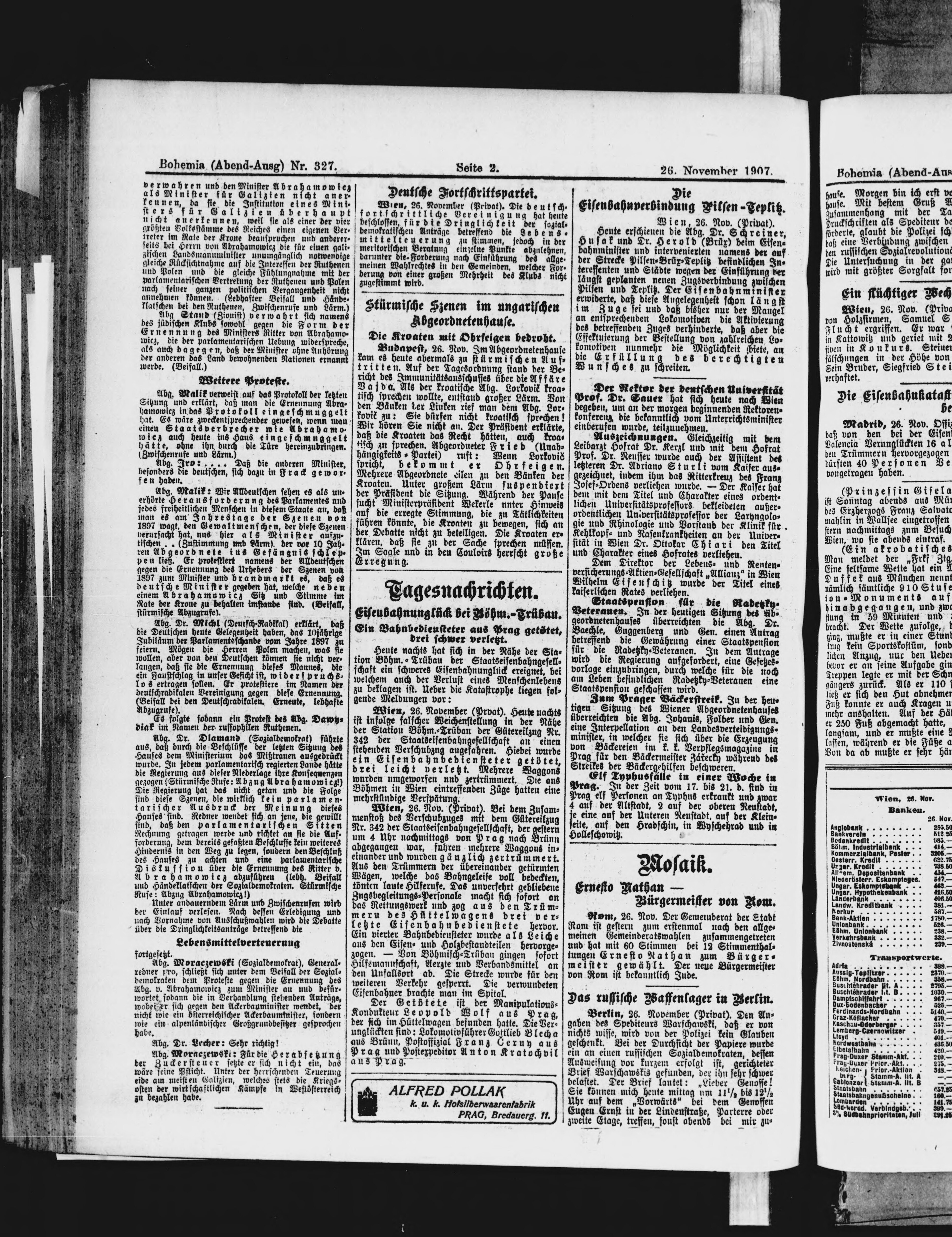 * Datum vydání výtisku: 26.11.1907 Číslo výtisku: 327 Poznámky k výtisku: večerní vydání
